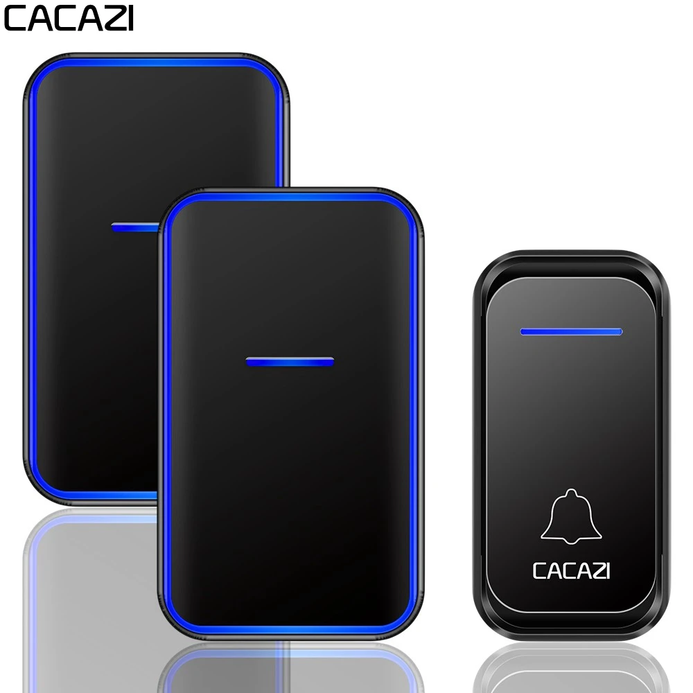 Беспроводной умный дверной звонок CACAZI, водонепроницаемый, с 1 кнопкой и 12 приемником, со штепсельной вилкой Стандарта США, ЕС, Великобритании, Австралии