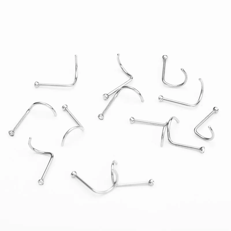 10 шт., маленькие Кристальные кольца для носа, l-образная форма, нержавеющая сталь, шпильки для пирсинга носа, ювелирные изделия, невидимое кольцо для носа для женщин, бесплатная доставка