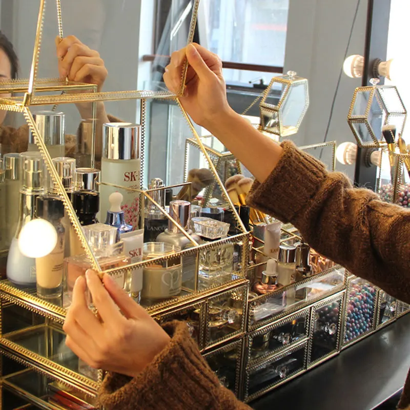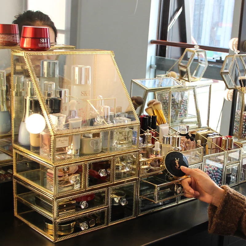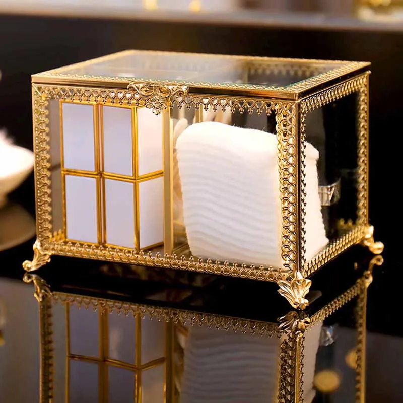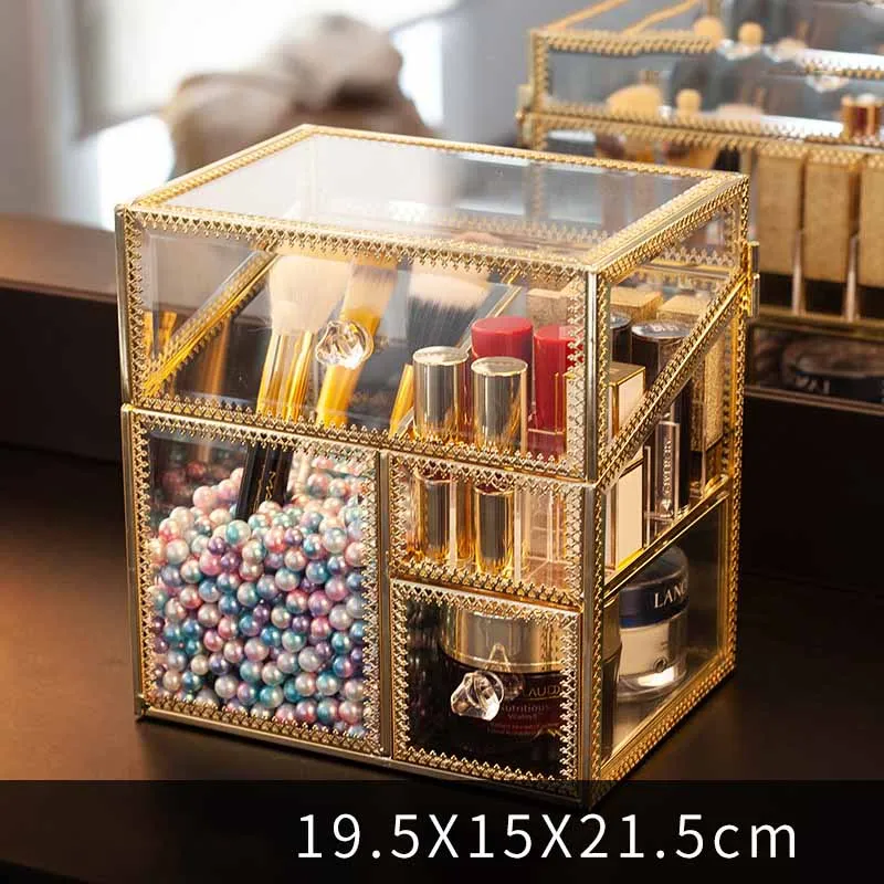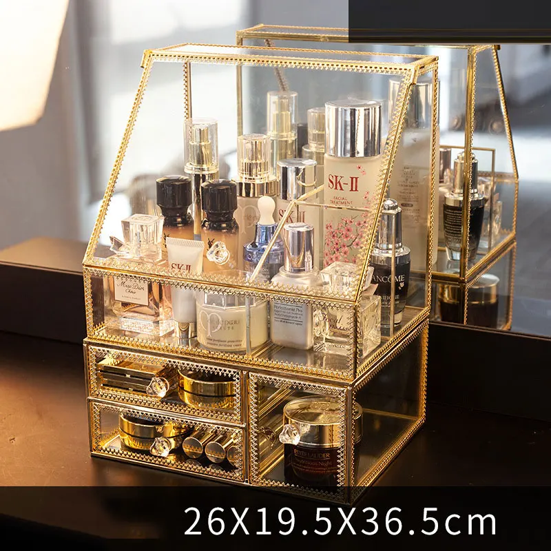 Прозрачный стеклянный органайзер для макияжа, большая настольная полка для ухода за кожей, коробка для хранения салфеток, ювелирных изделий, кольца, ожерелья