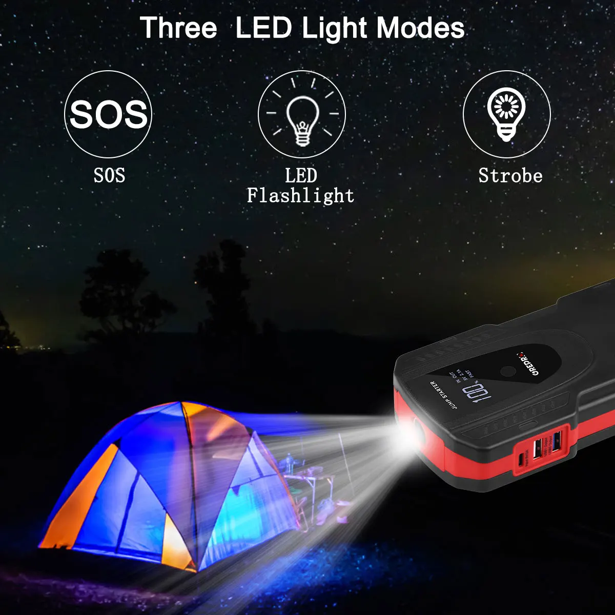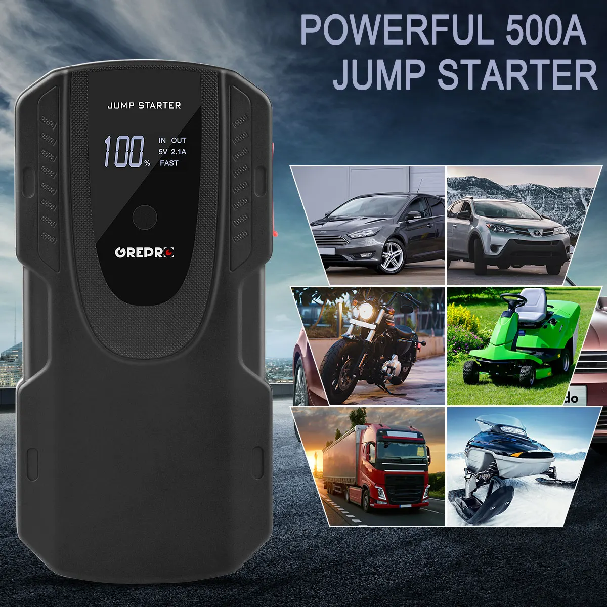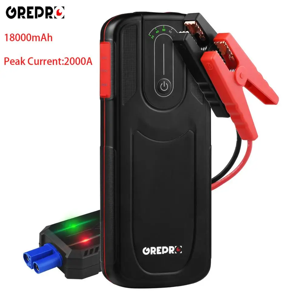 Автомобильное пусковое устройство Grepro, внешний Аккумулятор 18000 мАч, автомобильный пусковой Аккумулятор для экстренных ситуаций, автомобильный бустер, мощный аккумулятор со светодиодный светильник кой