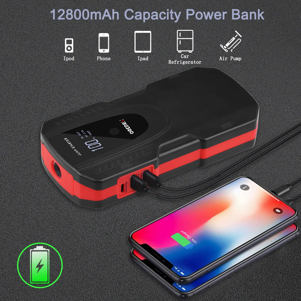 Автоматическая бустерная батарея может запускать все виды транспортных средств 12 В (для газовых двигателей до 6,0л, для дизельных двигателей до 4,0л), работает для мотоциклов, RV, тракторов, светильник грузовых автомобилей малой грузоподъемности, газонокосилка, cargo, квадроциклов, снегоходов, Масляная лодка и т. Д. Каждый водитель должен иметь чехол для аварийной ситуации. ★Внешний аккумулятор большой емкости 12800 мАч: выходной порт 5V-2A позволяет быстрее заряжать ваши мобильные телефоны, планшеты, kindles и другие устройства. Поставляется с usb-кабелем и зарядным устройством для прикуривателя, чтобы вы могли зарядить стартер скачка дома или в машине. Чтобы убедиться, что вы остаетесь на связи с миром во время путешествия.