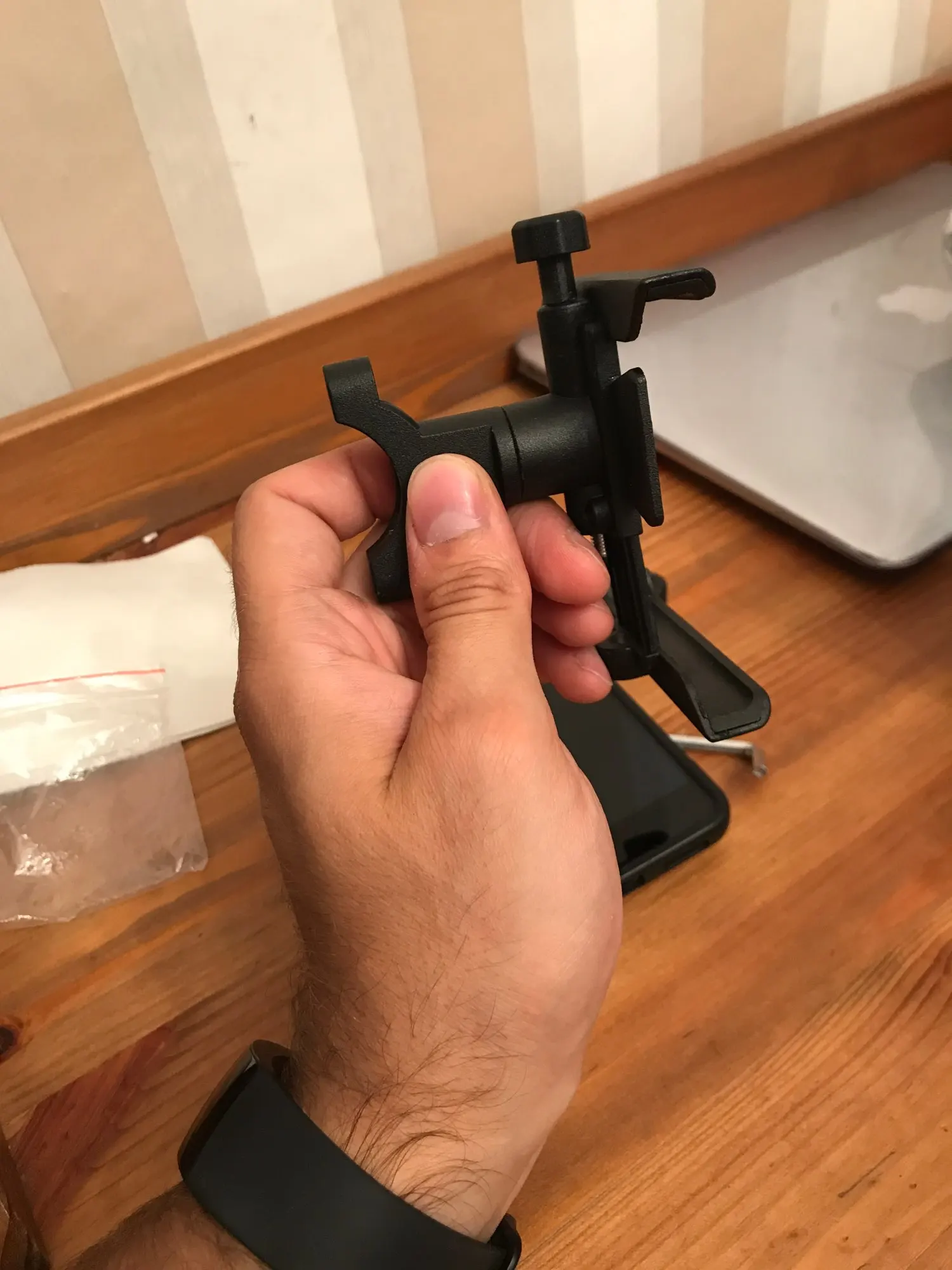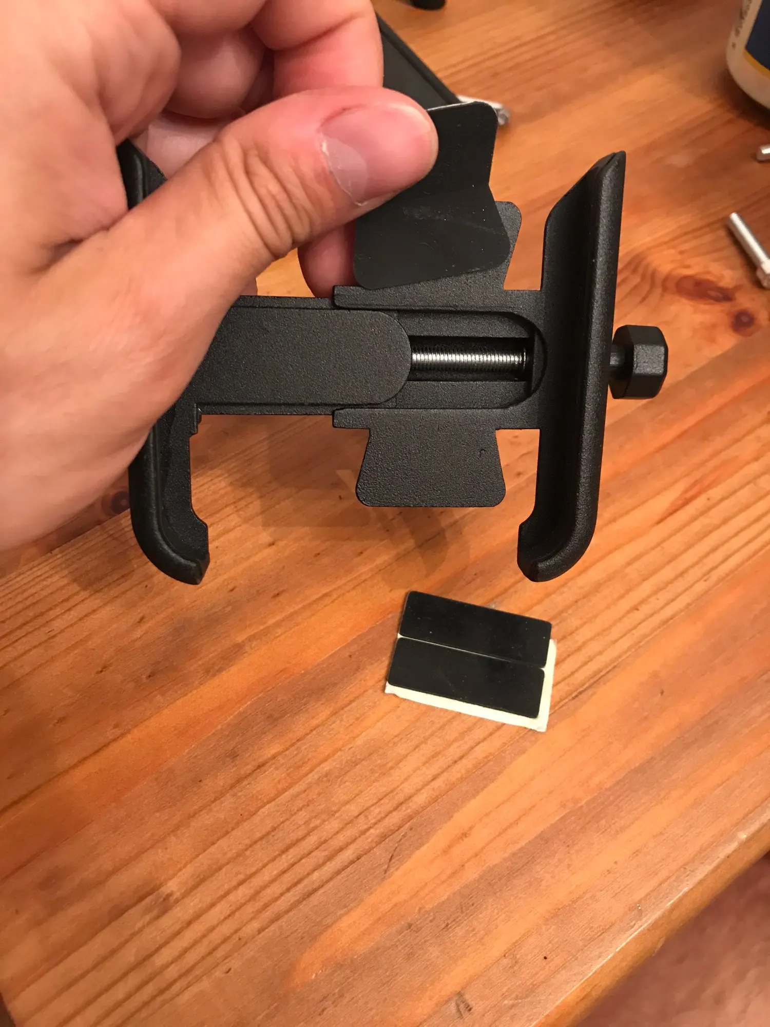 Крепление пришло быстро. Достаточно тяжелое, алюминиевое. Айфон 7 плюс с толстым чехлом спокойно помещается и еще остается большой запас (на фото закреплен андроид). Крепление можно поворачивать относительно крепежа к рулю (механизм представляет собой две части с зубцами под натяжением пружины - при прокручивании достаточно туго перескакивает с зуба на зуб). Есть наклейки. Трапеции клеятся на крепеж со стороны тыла телефона. Прямоугольники пока не понял куда клеить. Рекомендую крепить телефон в чехле, чтобы его не поцарапать, хоть в рамке крепежа и есть пластиковая проставка. Товар рекомендую.