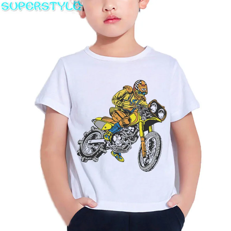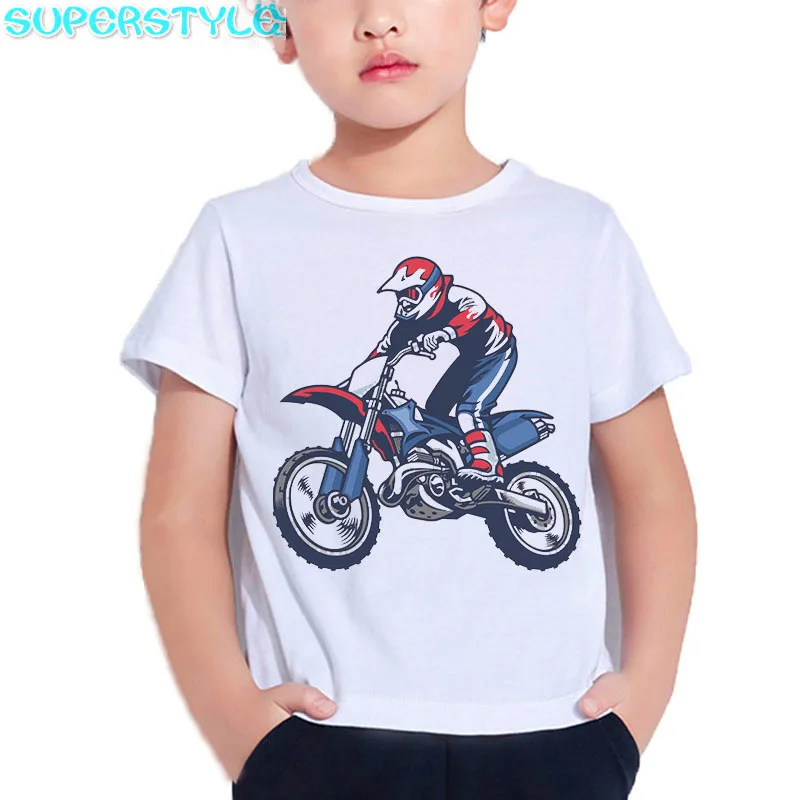 2021 летние детские футболки с рисунком мотоцикла, экстремальные виды спорта, детские белые топы с короткими рукавами, одежда для мальчиков dHKP501