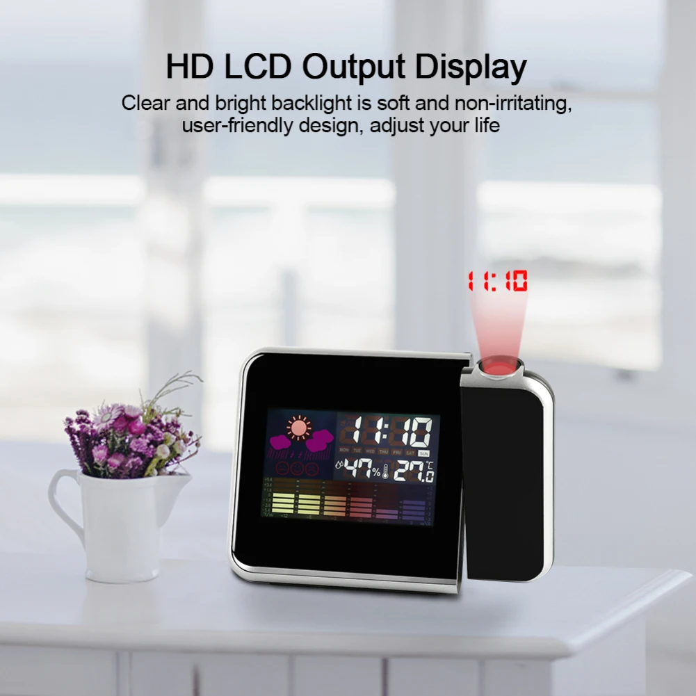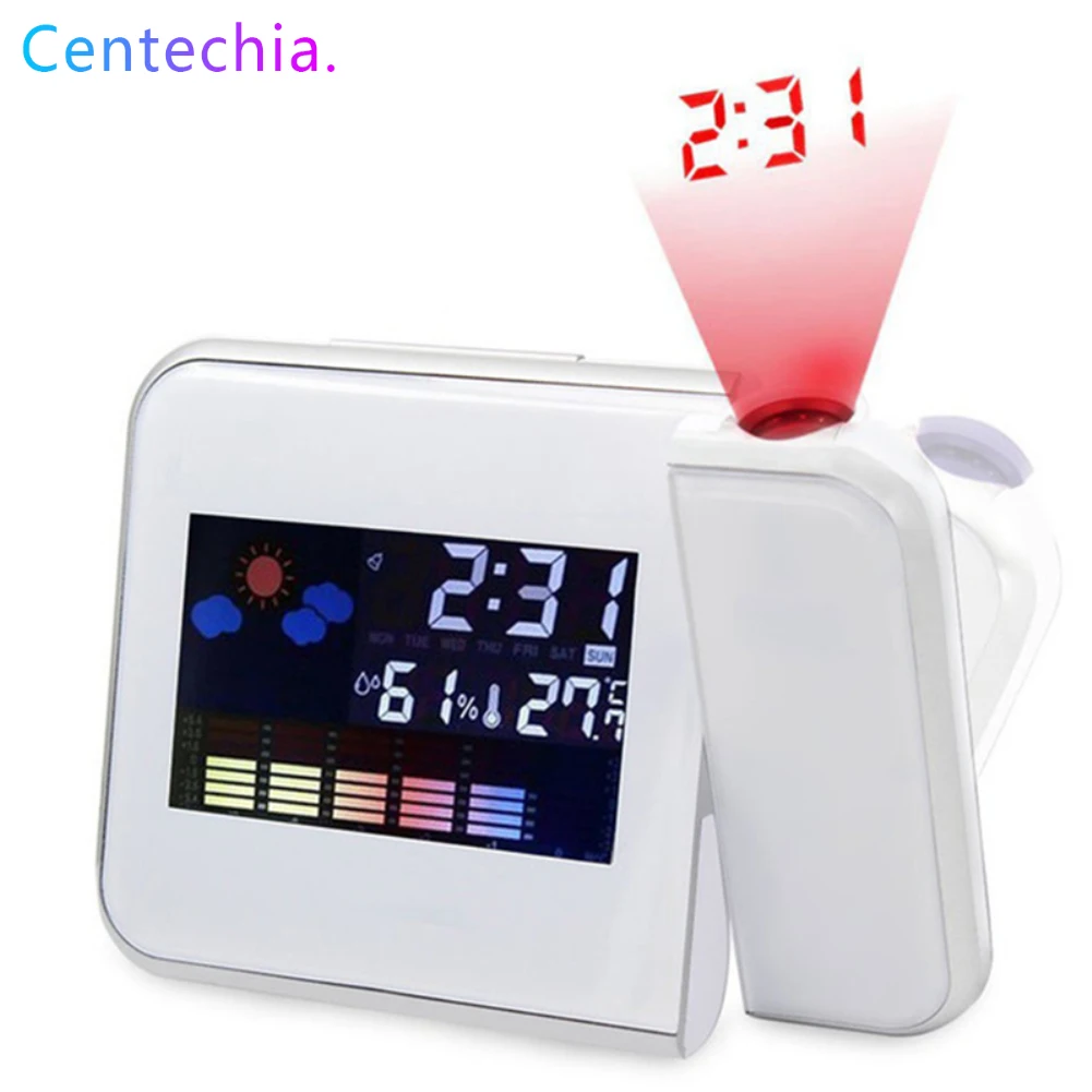 Будильник проекционный с функцией повтора и даты, настольные светодиодные часы с подсветкой для показа погоды