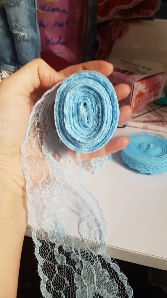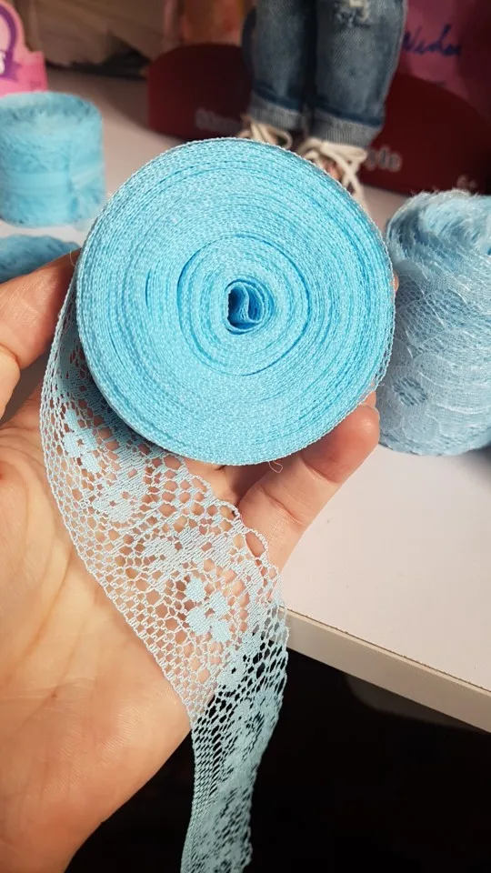 (10 ярдоврулон) Небесно-голубая кружевная тканевая лента украшение упаковочный материал для подарков
