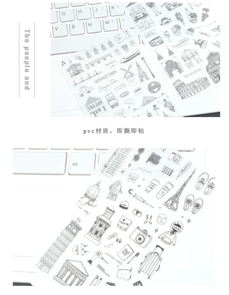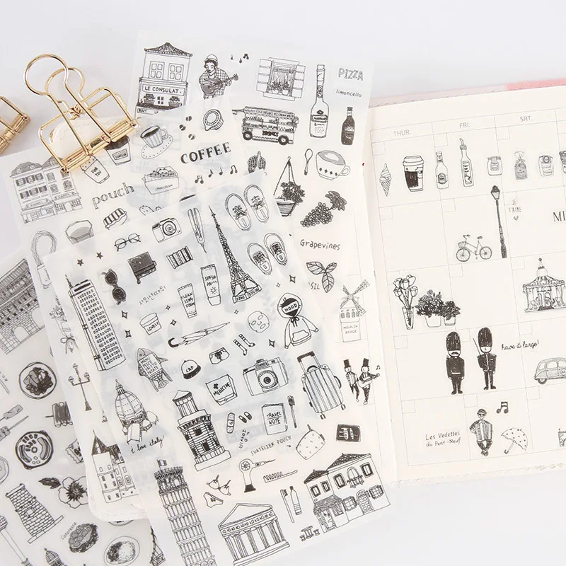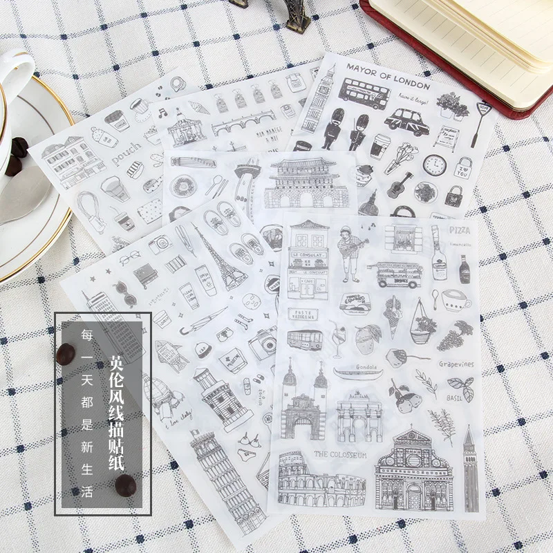 6 листовуп Винтаж городское здание набор наклеек Скрапбукинг наклейки для Журнал Планировщик поделки своими руками и Скрапбукинг дневник