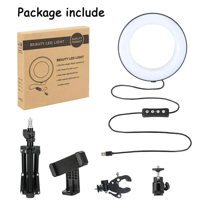 Посылка B: светодиодный кольцевой светильник 6 "/8", шаровая Головка, штатив, держатель для телефона