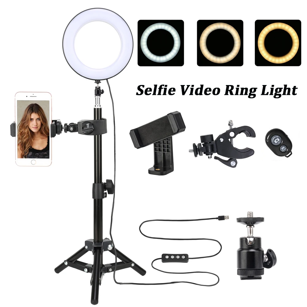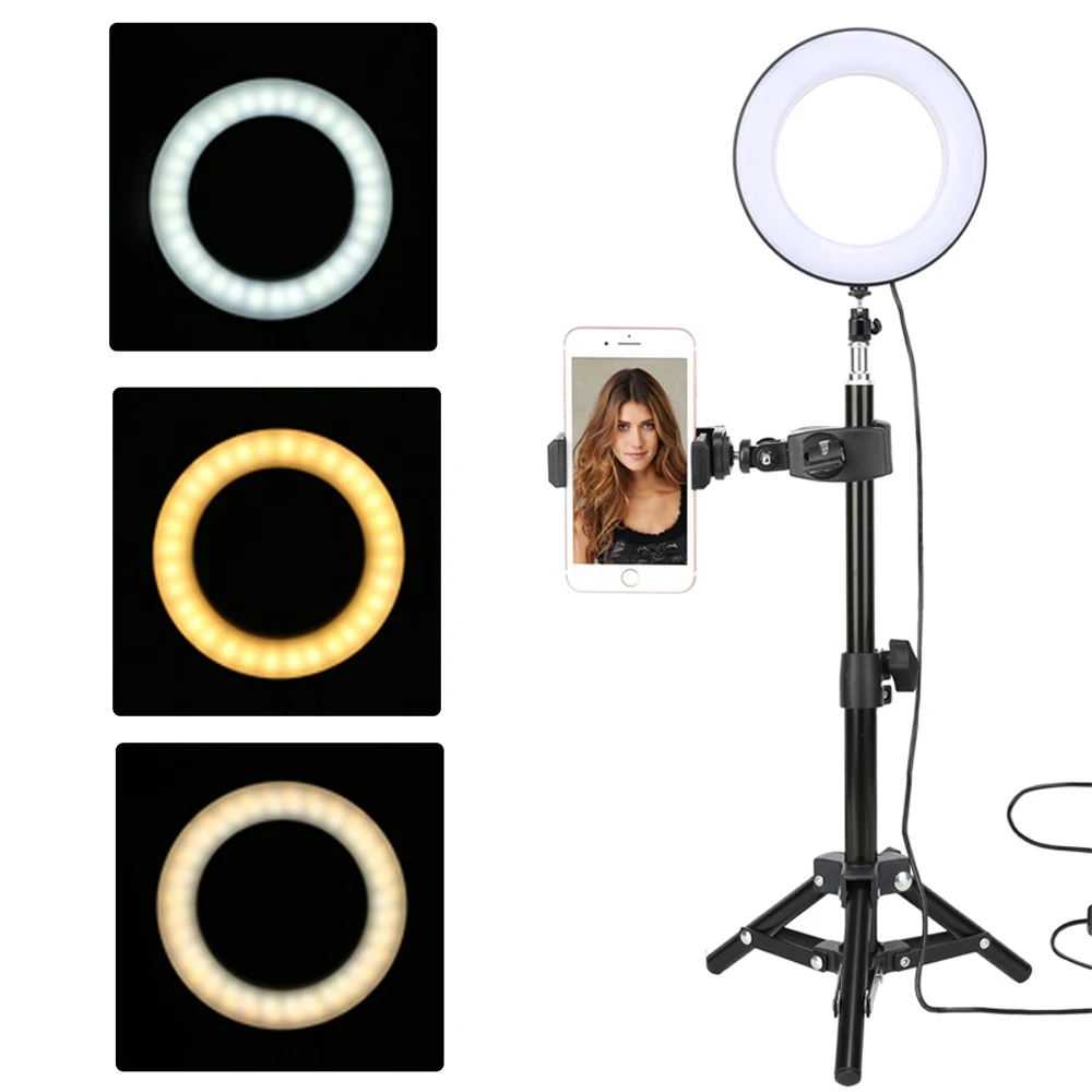 Настольный светильник-кольцо для видеосъемки 6 "8" с держателем для телефона Stnad, светодиодный светильник с регулируемой яркостью для селфи, светильник для съемки в реальном времени в Youtube