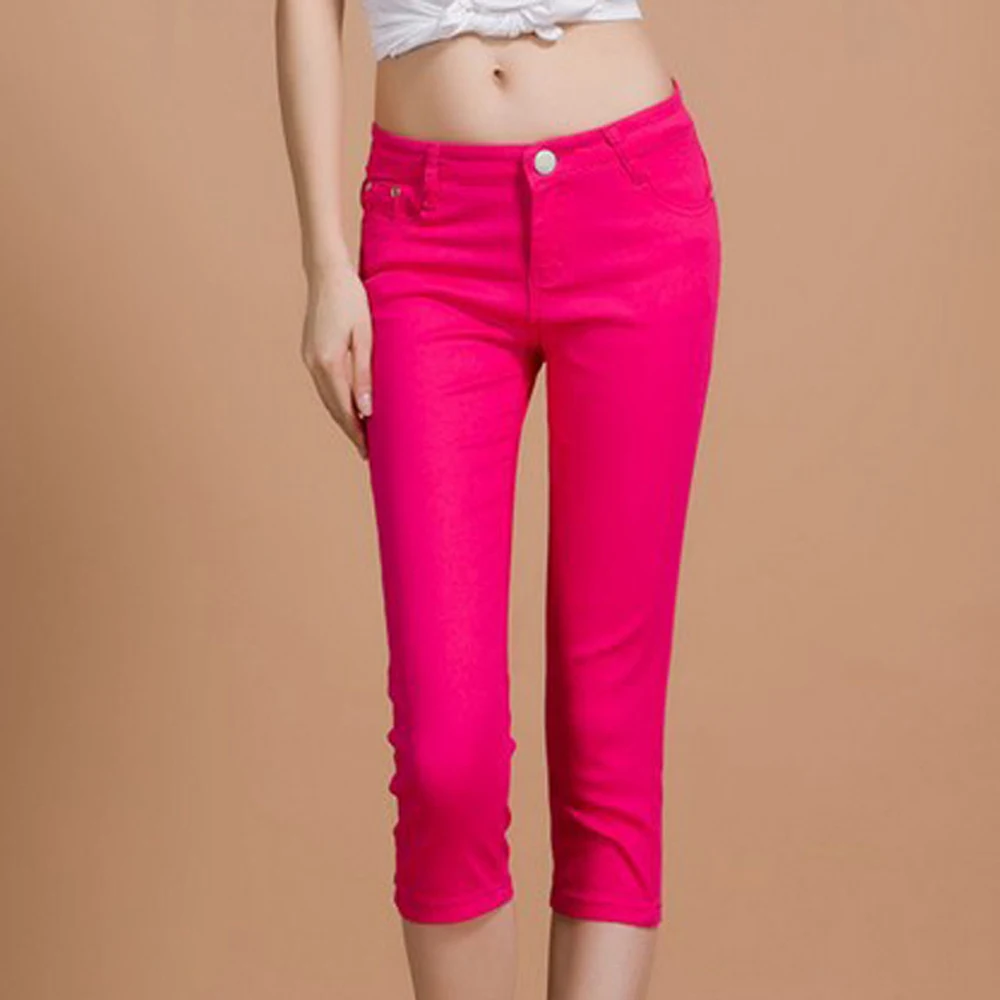 Брюки женская одежда 2021 повседневные эластичные джинсы яркие цвета облегающие зауженные брюки до середины талии брюки до середины икры Y2K для женщин