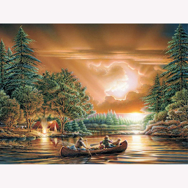 Алмазная живопись 5D сделай сам, квадратная вышивка крестиком с изображением лодки, 3d-вышивка крестиком с изображением пейзажа, стразы, рождественский подарок