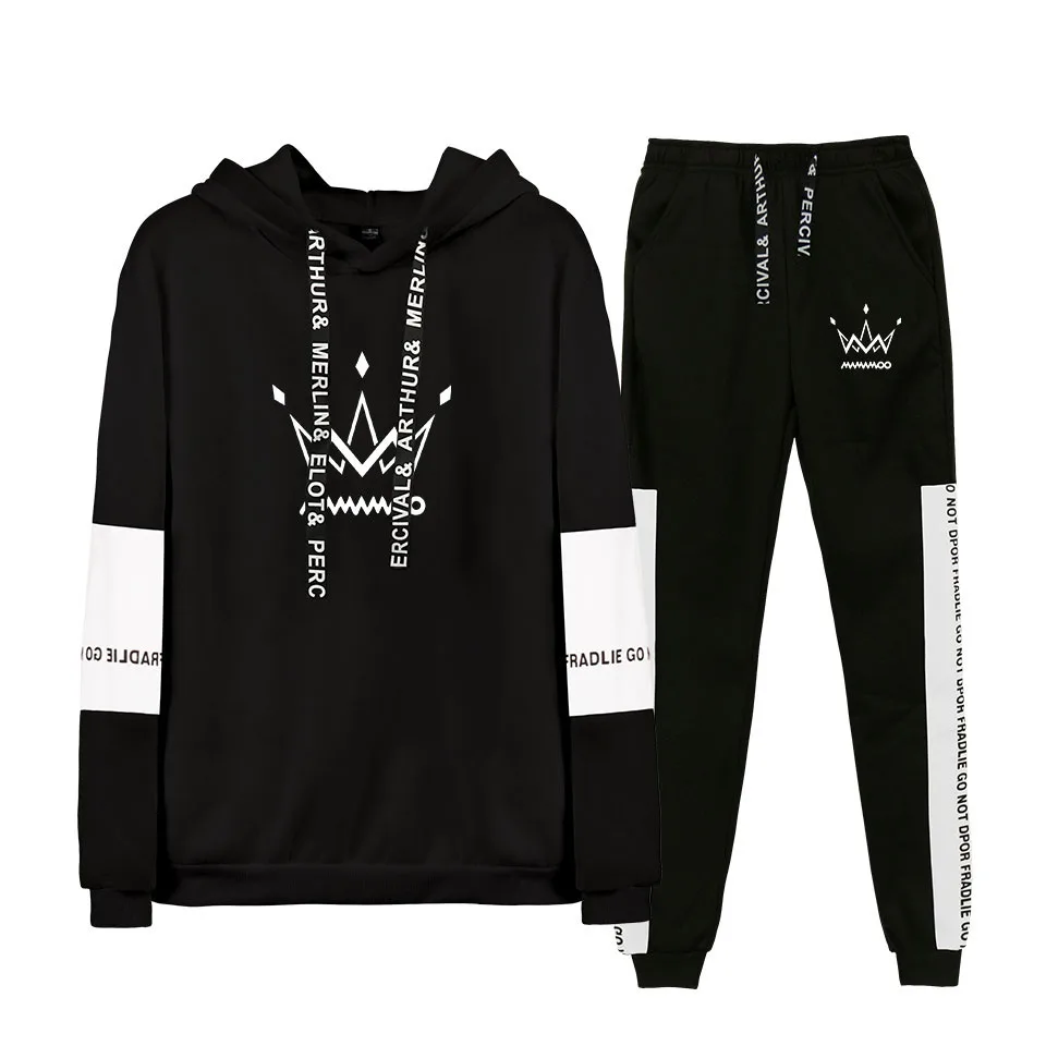 Дикий спортивный костюм из хлопка, модные толстовки с капюшоном MAMAMOO, толстовки + черные спортивные штаны для мужчинженщин, осенне-зимний комплект