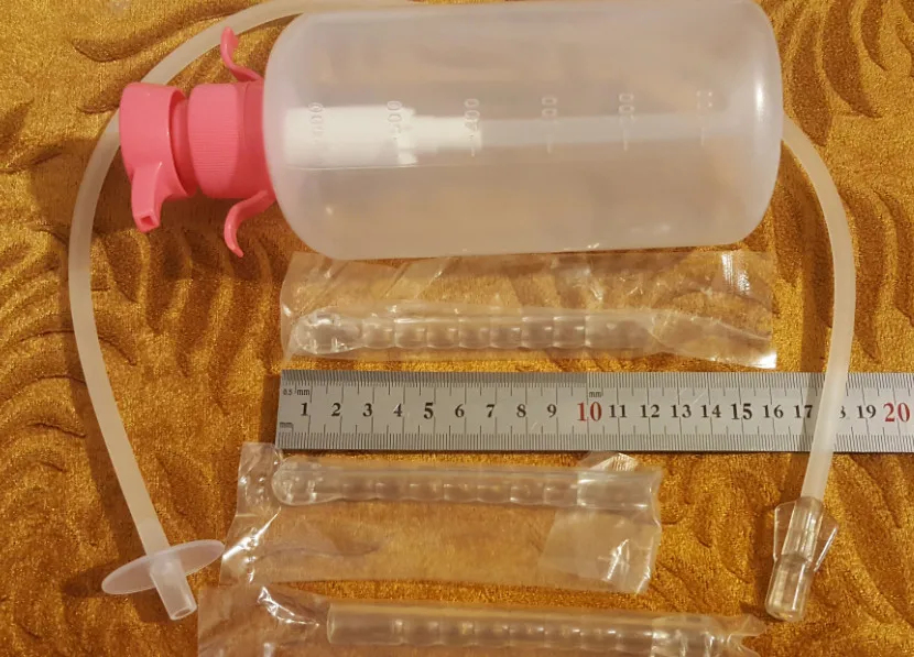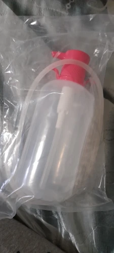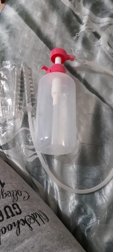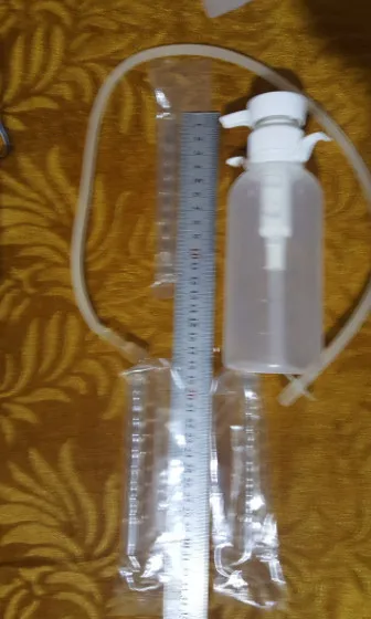 Доставка в течение задержки. Бутылка изготовлена из жесткого пластика, трубки и насадки изготовлены из мягкого материала, легко моются. Очень хорошо во всем.