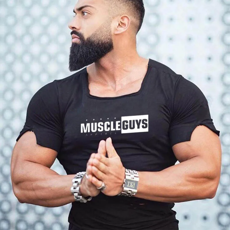 Мужская футболка для фитнеса Muscleguys, летняя облегающая футболка...