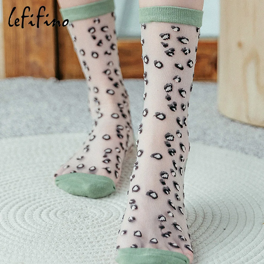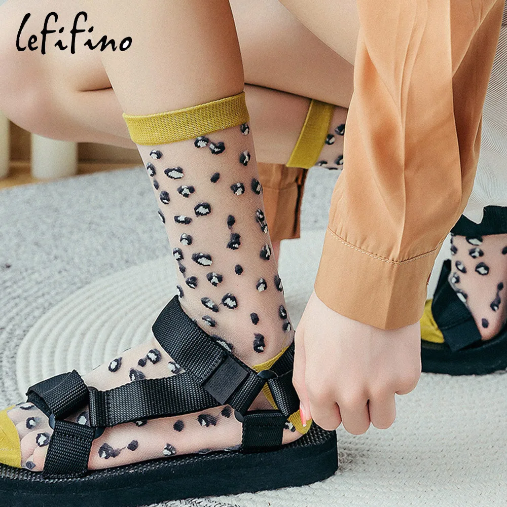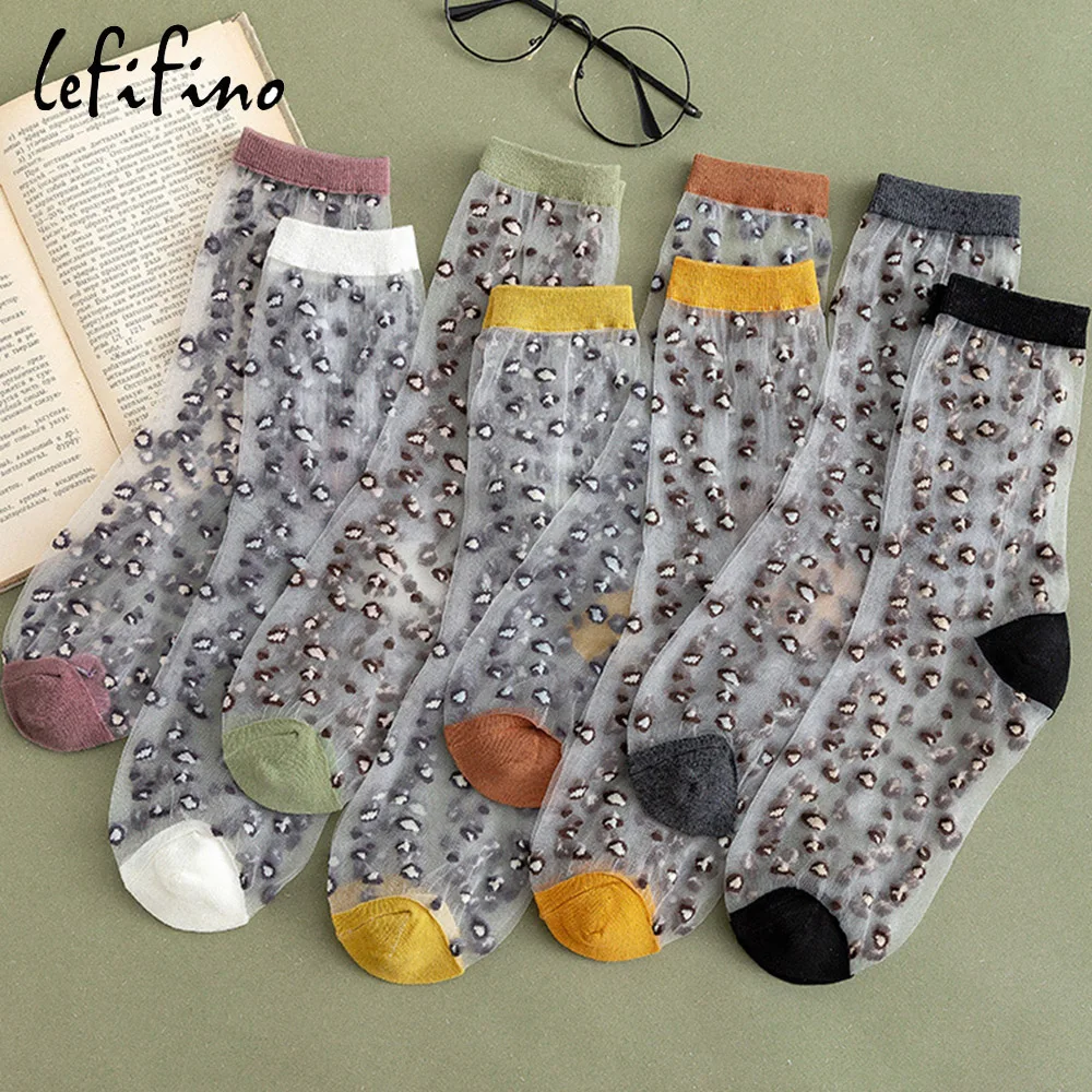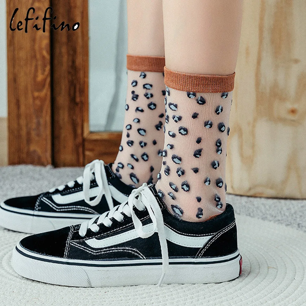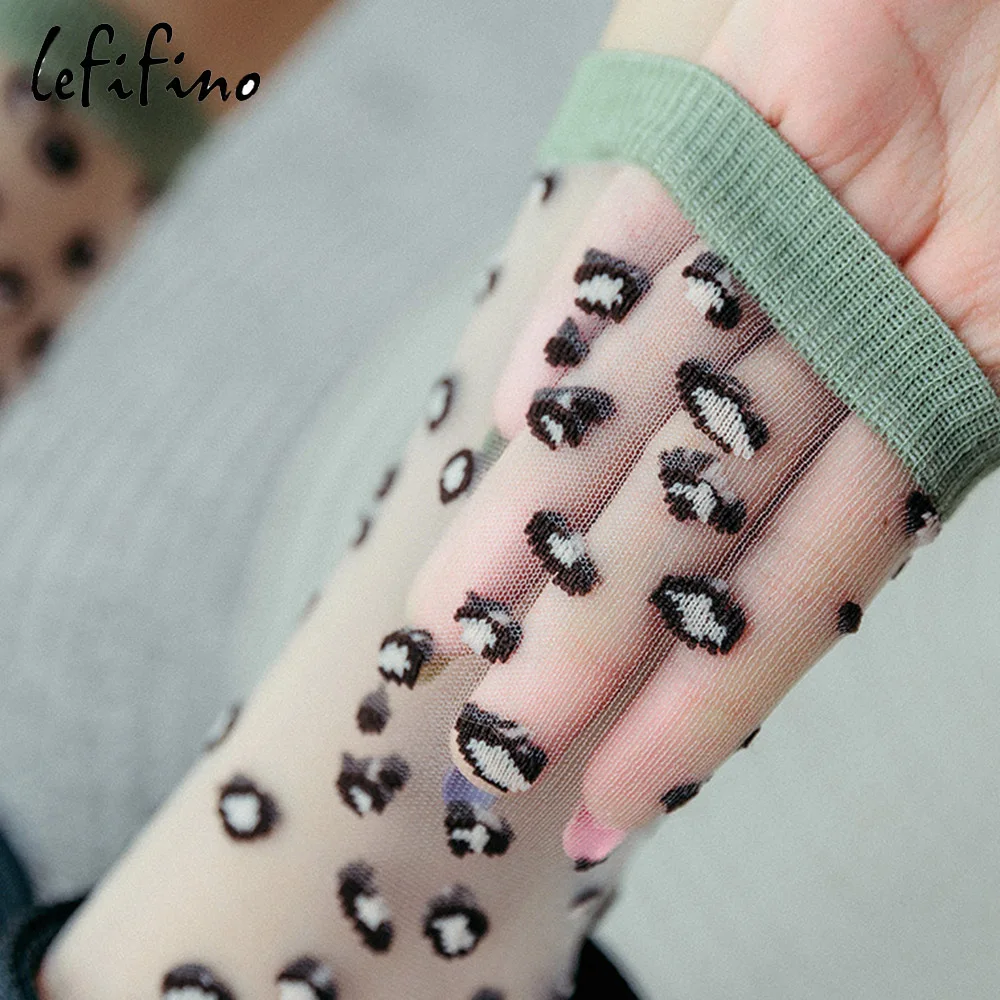 Леопардовые прозрачные ультратонкие шелковые носки, Модные дышащие короткие женские носки из тюля, летние элегантные эластичные носки