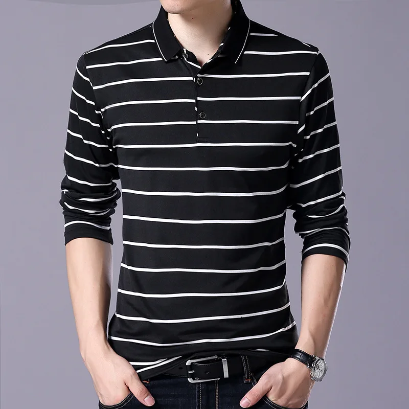 Рубашка-поло мужская в полоску, 2022 хлопок, с длинным рукавом