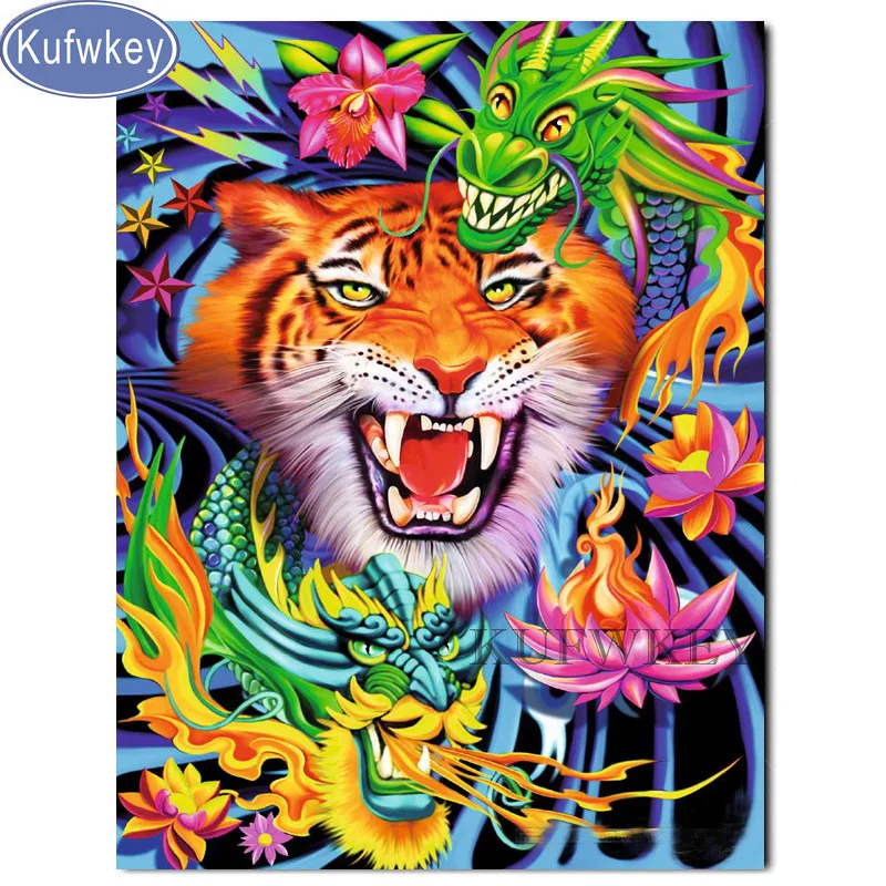KUFWKEY foamiran для рукоделия тигр/дракон 5d алмазная картина полная дрель квадратные Стразы Картины Мозаика Алмазная вышивка продажа N531-7