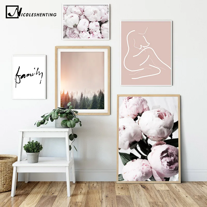 Розовый цветок пиона холст картина растение постер Скандинавское ук...