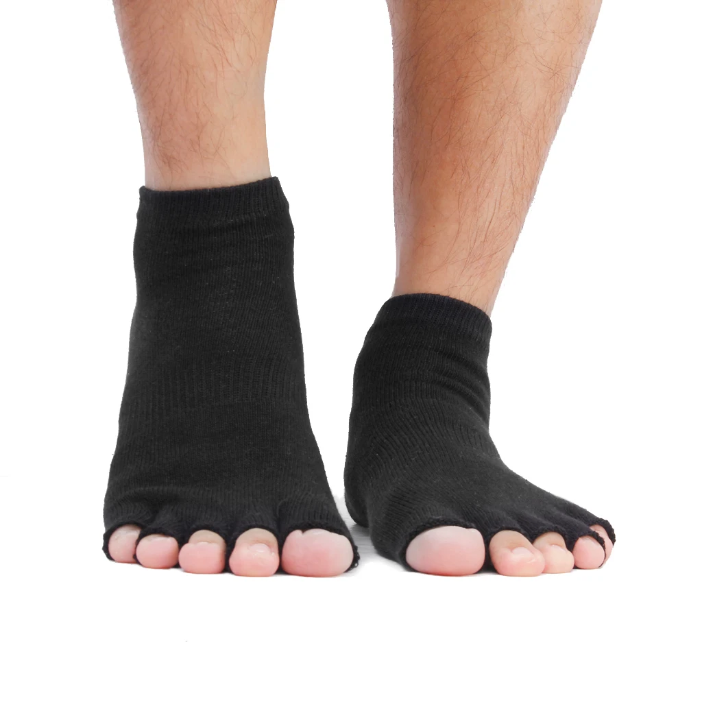 1 пара, мужские, женские, унисекс, дышащие, пять пальцев, носки с открытыми пальцами, короткие носочки, носочки, рукоятка, для спортзала, Пилатес-черный