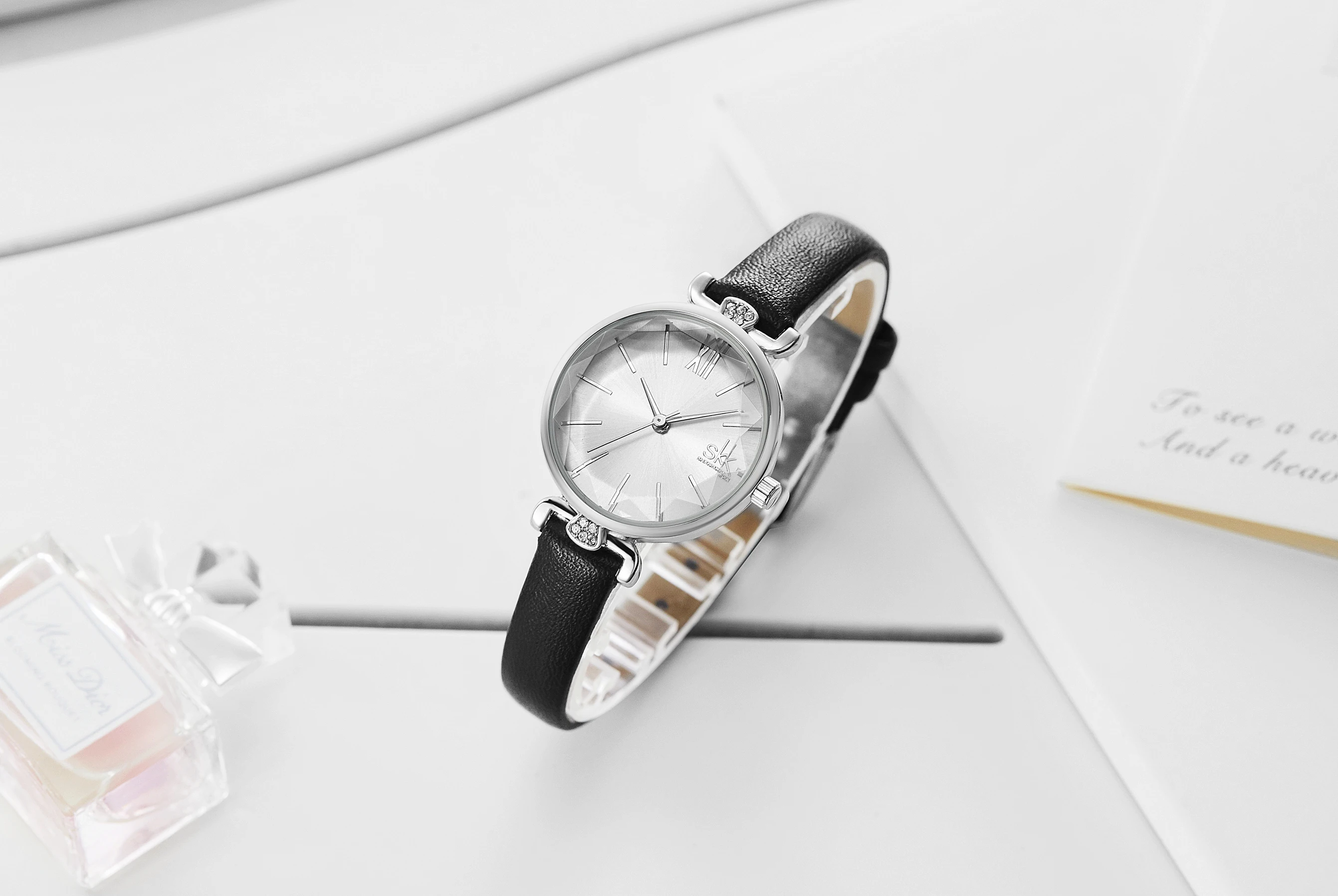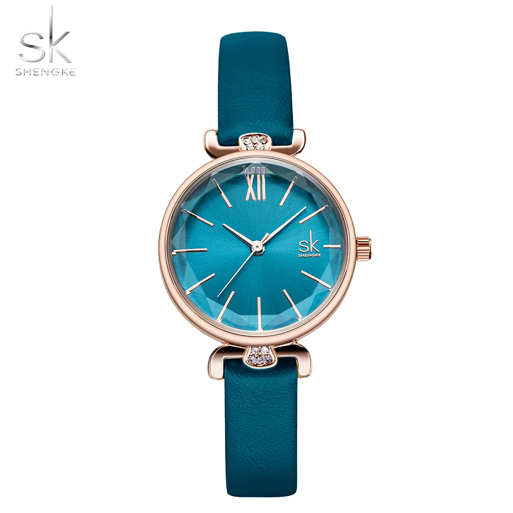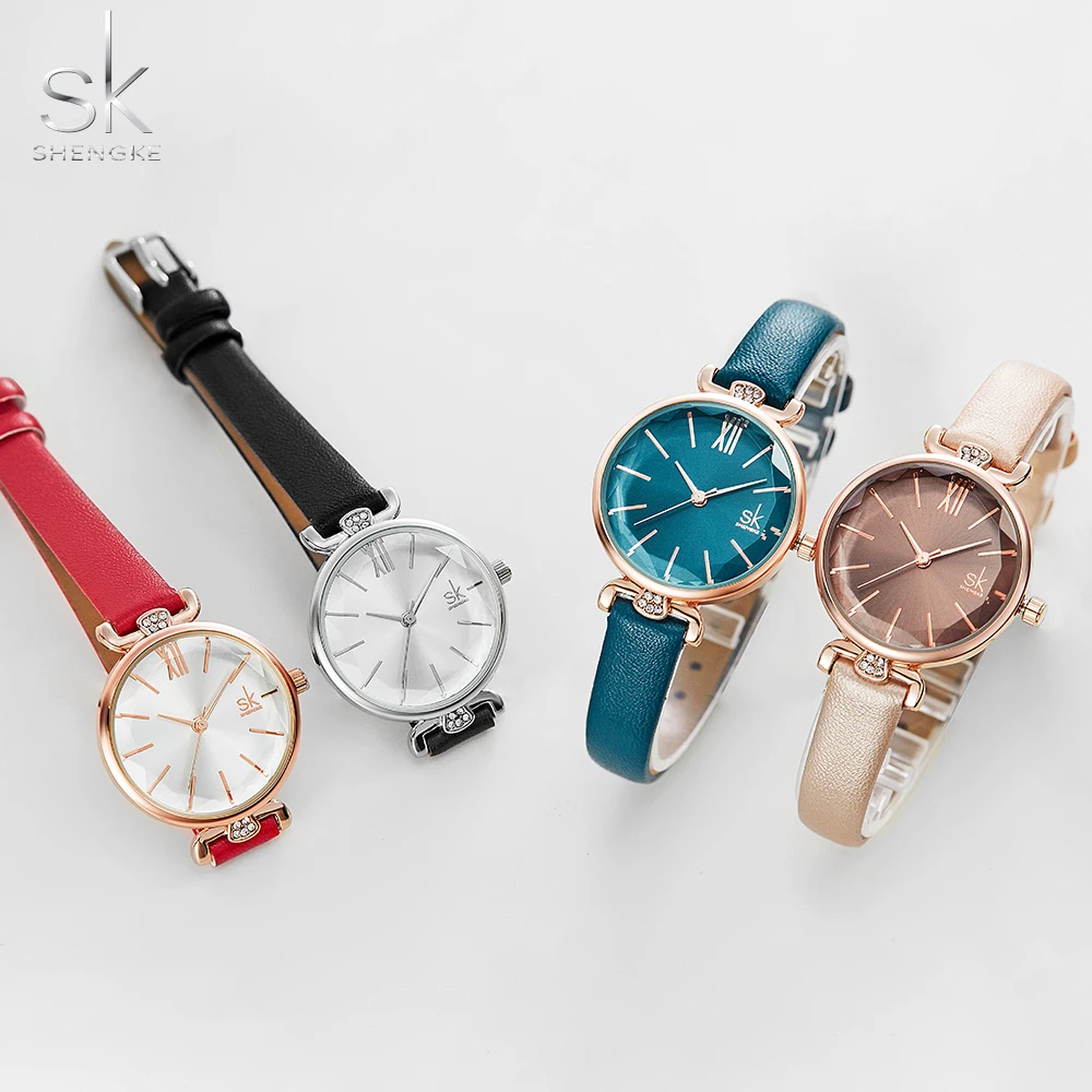 Кварцевые наручные часы shengke, женские часы с кожаным ремешком, кварцевые классические повседневные аналоговые часы, женские простые часы в подарок