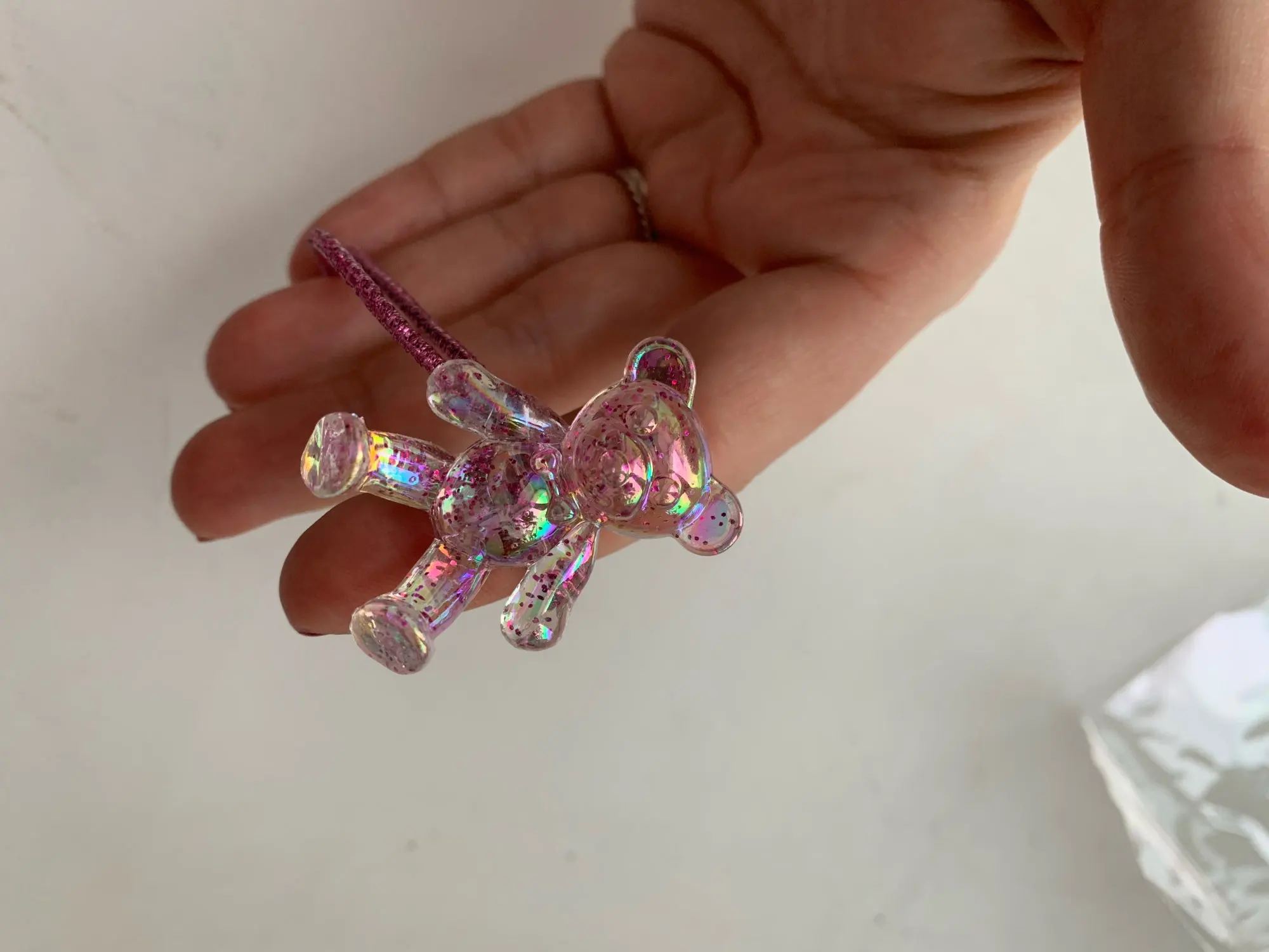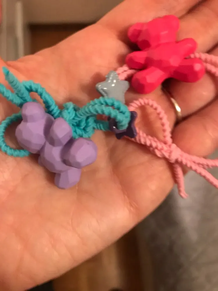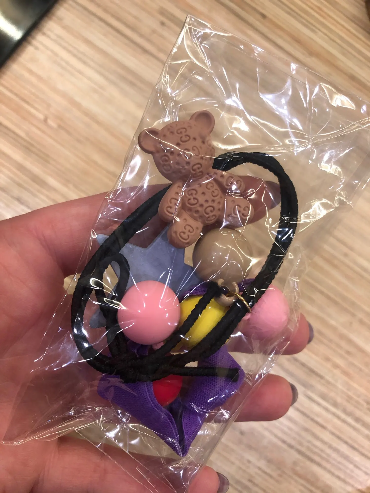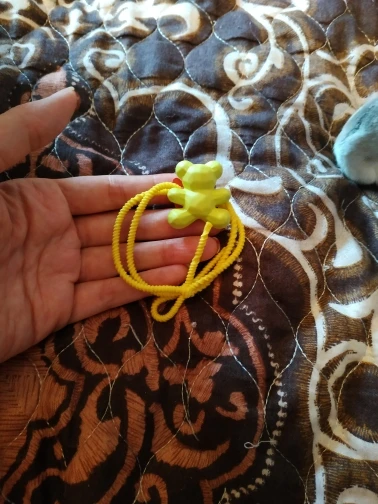 У этой резинки рыхлое качество, боюсь быстро растянется, но мишку можно будет пристроить на другую резинку!)
