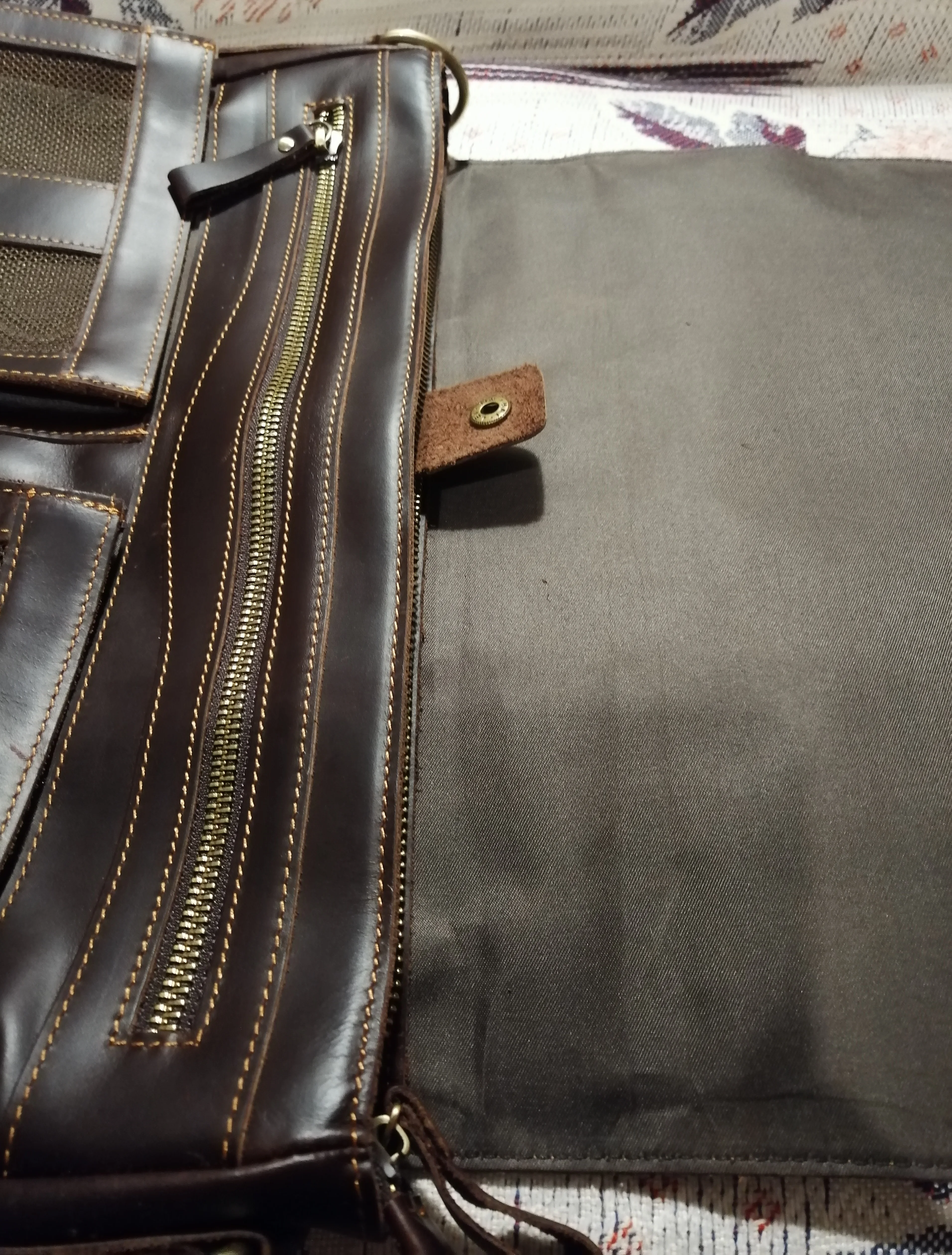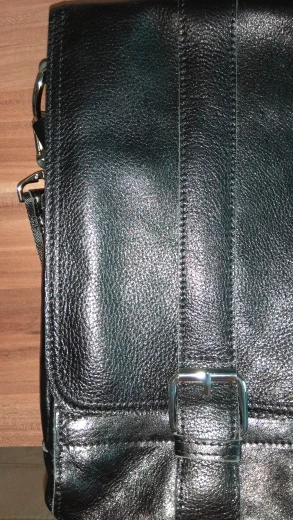 Сумка позиционируется продавцом из натуральной кожи. На самом деле - кожзам, хотя и похож на кожу. Пошита так, чтобы по максимуму спрятать обратную сторону материала. Большой клапан сумки с внутренней стороны закрыт довольно неприглядной дешевой текстильной подкладкой. При пошиве из натуральной кожи такого не делают, а оставляют обратную часть не прикрытой. Для убедительности попробовал участок материала на огонь, что окончательно подтвердило мою правоту. В общем впечатление неприятное. Не рекомендую!