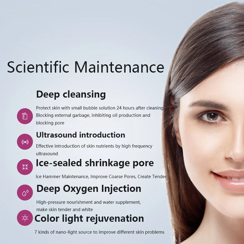 1. Ручка для очистки пузырьков:В богатой кислотной среде углекислого газа снижают значение PH в клетке, внутриклеточное кровообращение с гемоглобином и снижают способность, известную как: Bohr эффект, может улучшить кровообращение, увеличить содержание кислорода в крови, ускоряет метаболизм клеток кожи.2. БИО ручка:Подтяните мышцы глаз, усиливайте гибкость мышц глаз, чтобы текст окончания потери глаз, сумки для глаз, очки снимали усталость, уменьшали темные круги3. RF ручка:Продвижение фибробластов производит Восстановленный коллаген, делая кожу более упругой, гладкой и без морщин текстуру кожи.4. Ультразвуковая Ручка:Использование высокочастотного ультразвука на коже 1 Гц внутренние стимуляторы вибрации, в результате чего тепид приводит к улучшению метаболизма клеток кожи и способствует циркуляции крови, В то время как нижняя часть продукта входит в кожу, улучшает способность кожи удерживать влагу, очищает поры и улучшает состояние кожи.5. Холодный молоток:Энергия холодного молотка, воздействующая на кожу, поры кожи, питательные вещества и воду, блокированные в порах, предотвращают потерю влаги и обеспечивают седативный эффект аллергии.