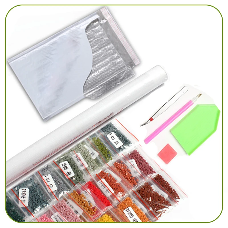 Посылка включает в себя: холст * 1, пинцет * 1, карандаш для инструментов * 1, тарелку * 1, достаточно алмазов и клеевого покрытия.