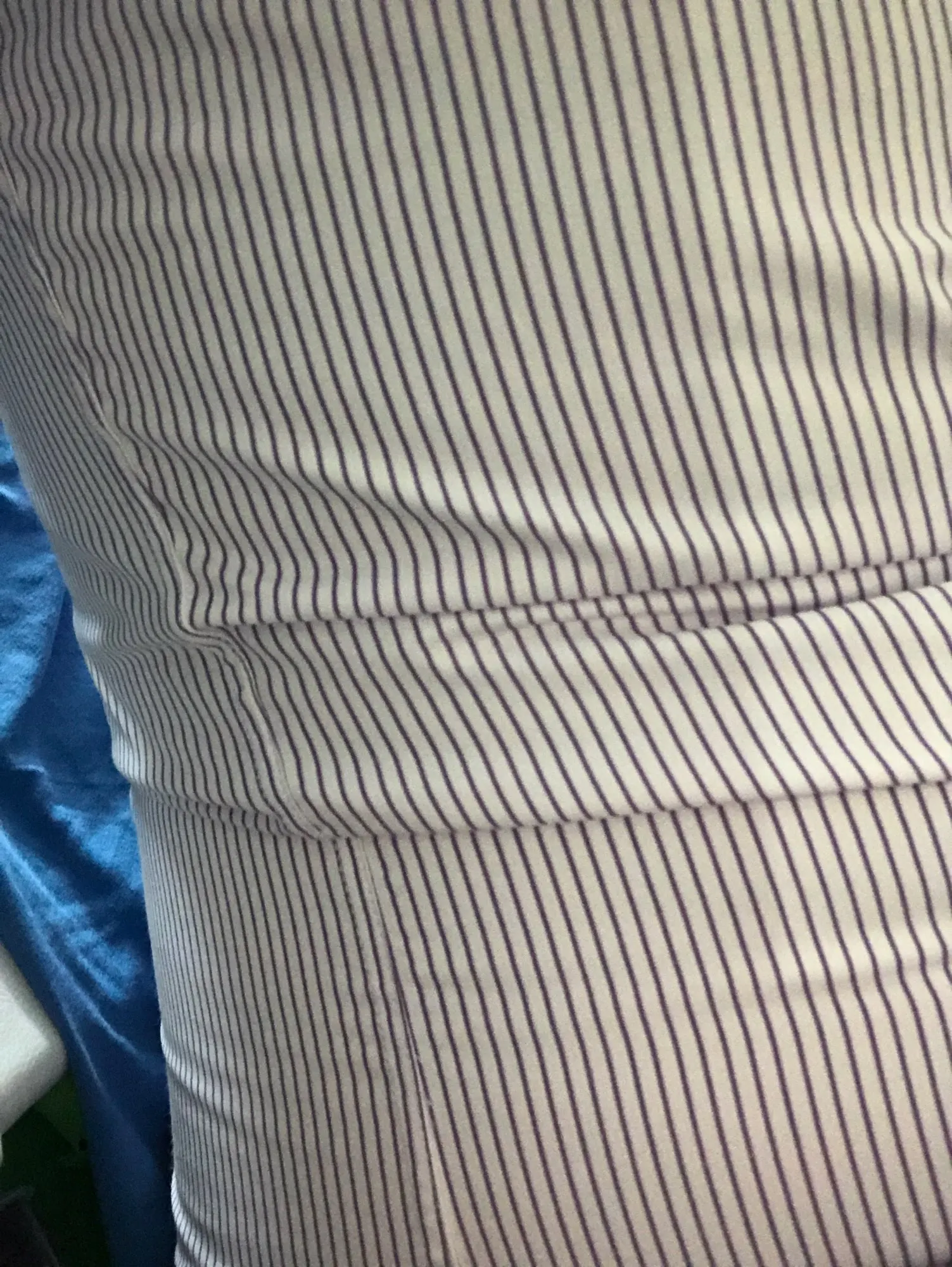 Тонкая рубашка с маленькими руками. На один размер больше, но рубашка будет немного шире.