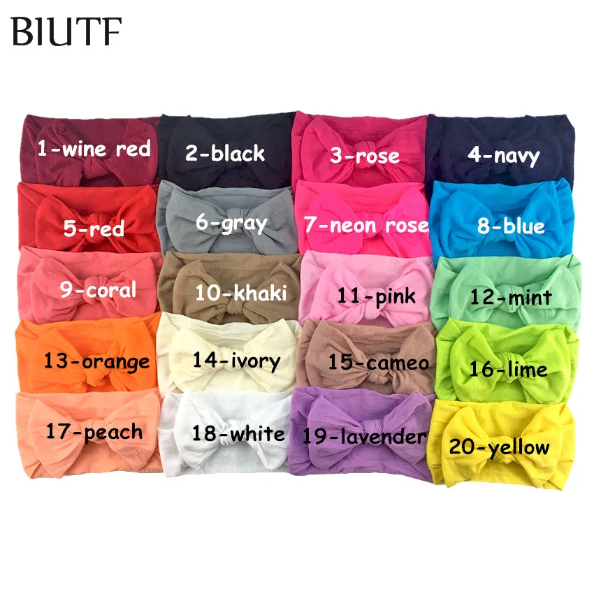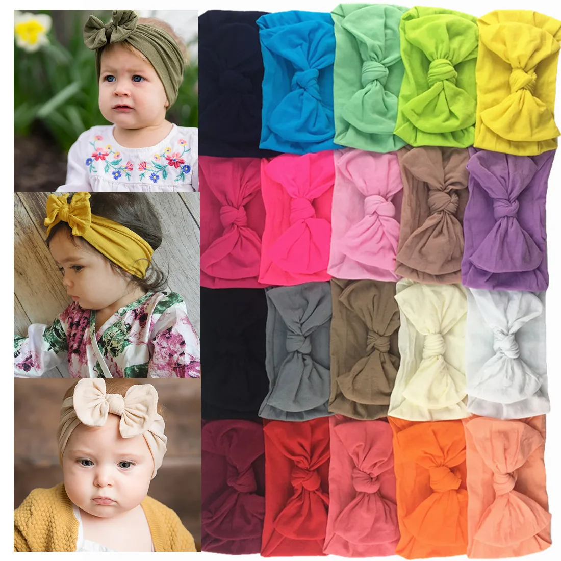 20 шт. новый модный жилет для маленьких девочек, повязка на голову, мягкий эластичный нейлон головная лента с бантом повязка на волосы "тюрбан" подходит для 0-32 месяцев младенческой Дети HB084
