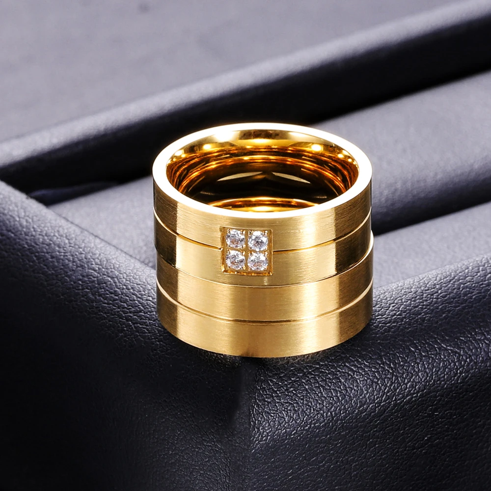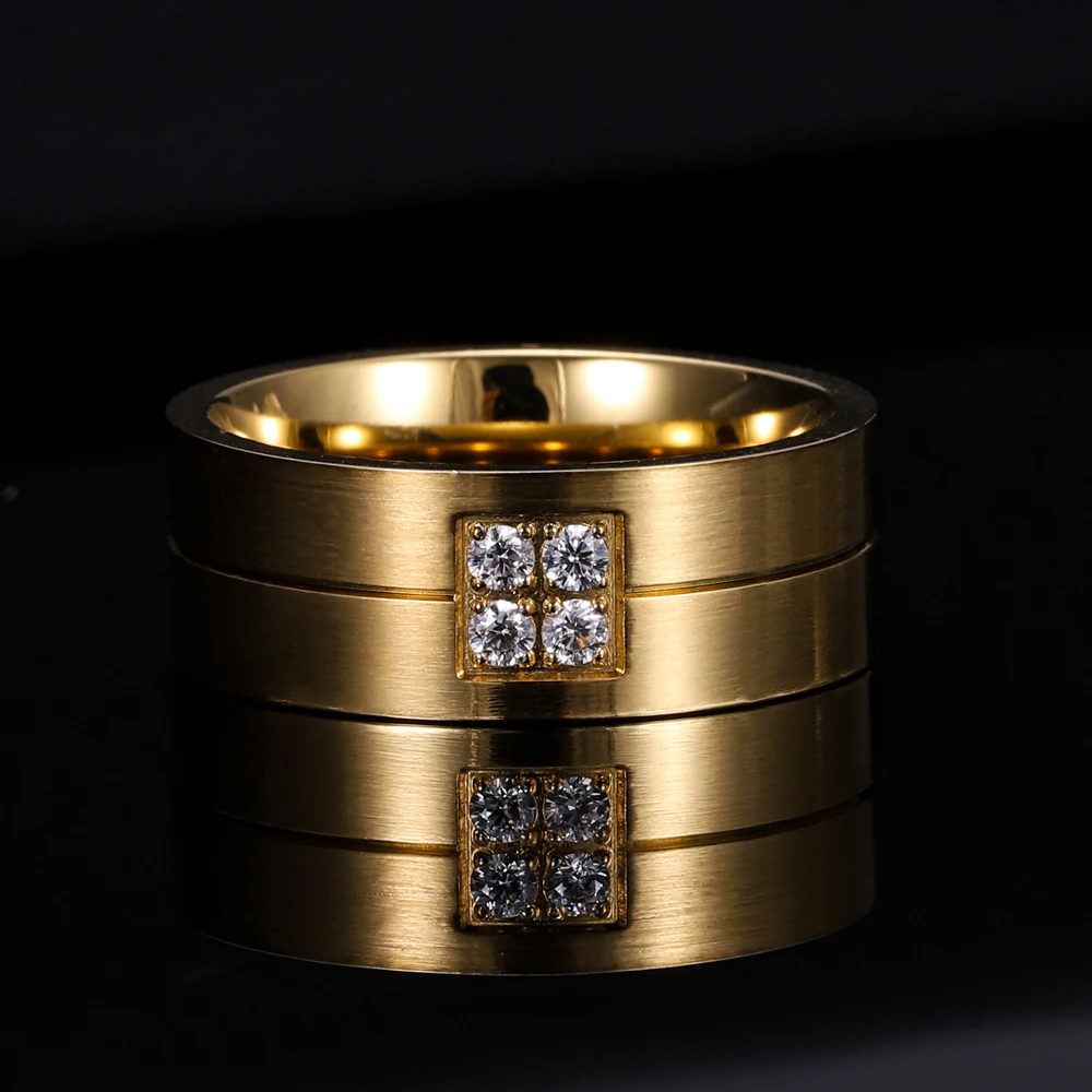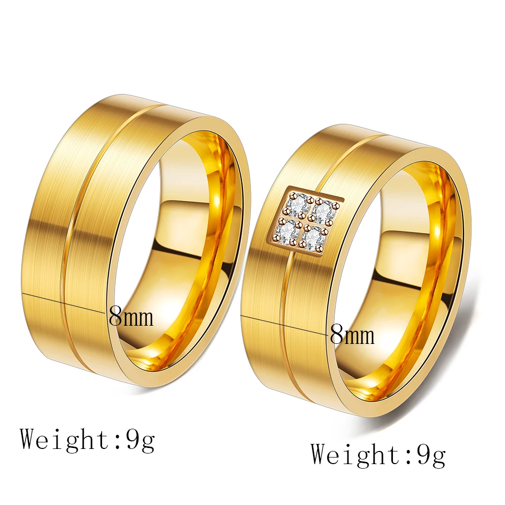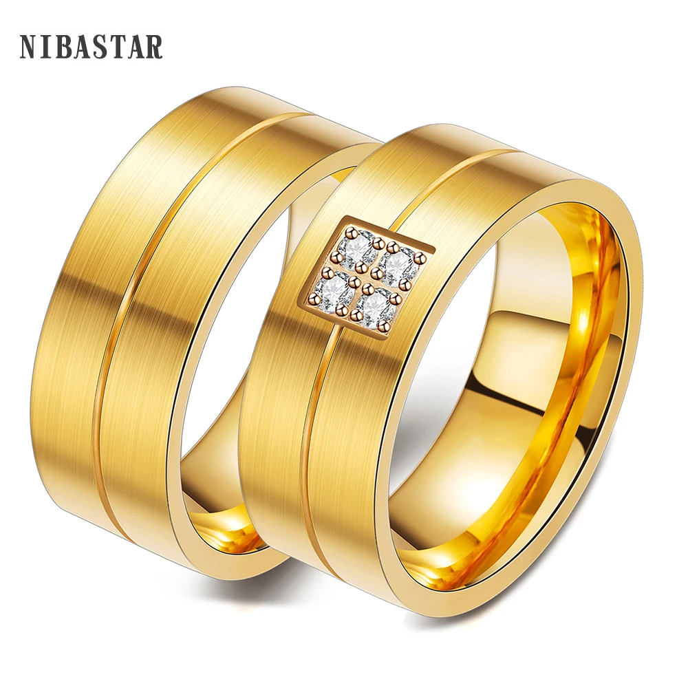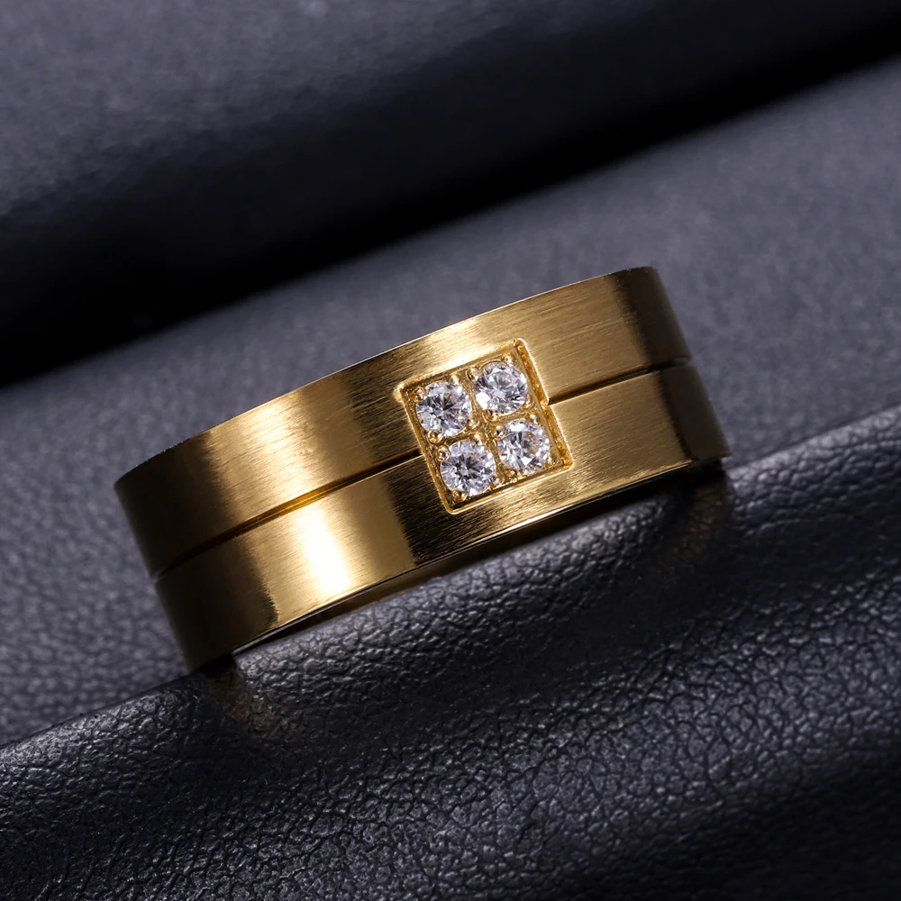 Новинка парные Обручальные Кольца Подарочные ювелирные изделия кольца из нержавеющей стали золотистого цвета обручальное кольцо с кристаллами для влюбленных