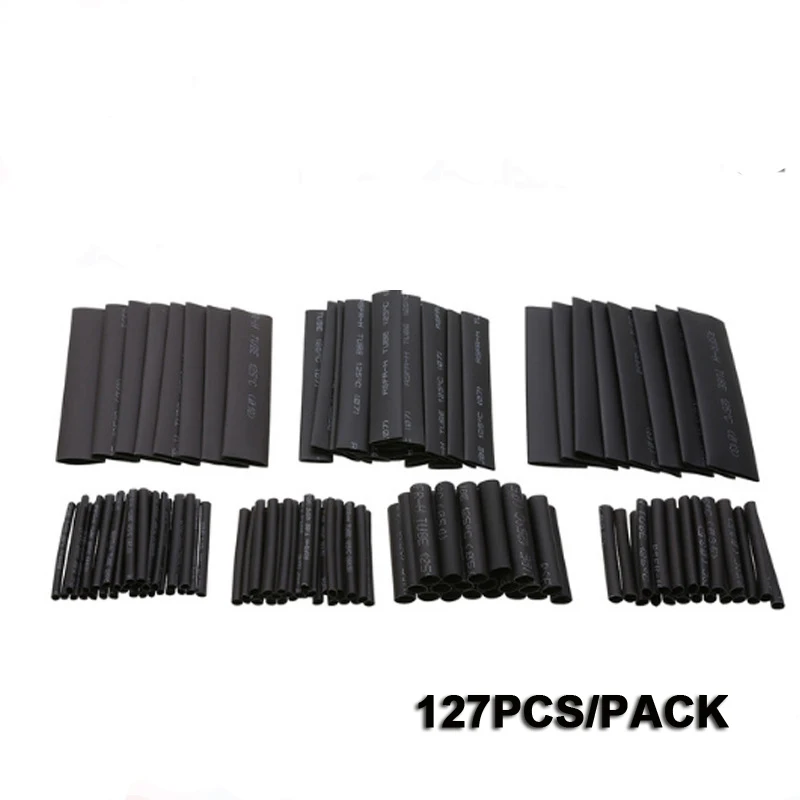 127 шт черный 7 размеров набор втулок кабеля термоусадочный комплект трубок Ассорти оберточная проволока или электрическая кабельная трубка изоляция