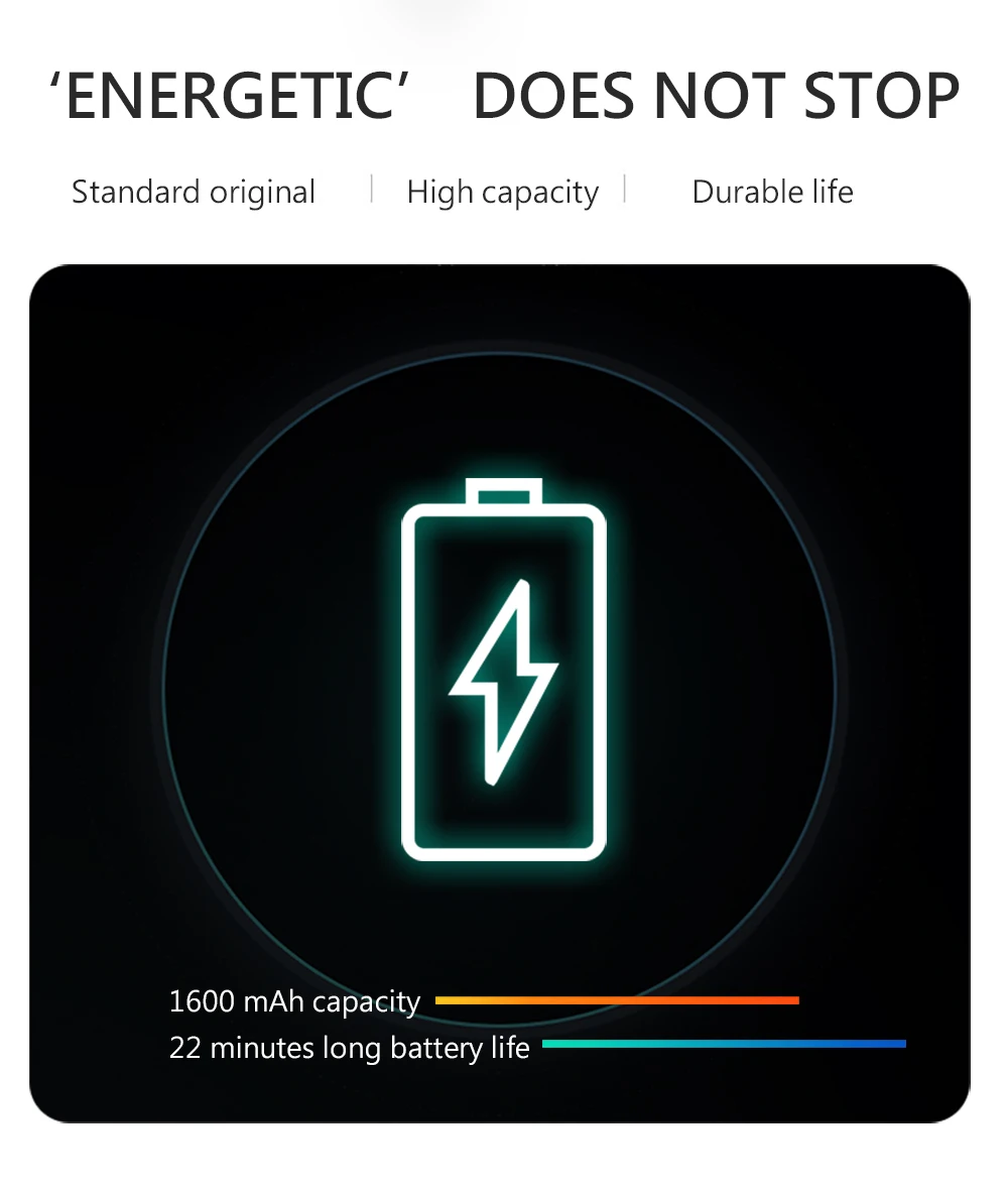 -Аккумулятор большой емкости 3,7 В 1600 мАч обеспечивает максимальное время полета 22 минуты.