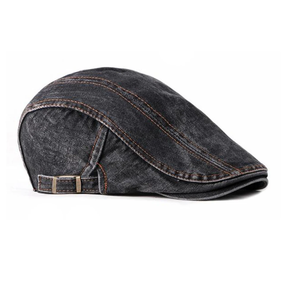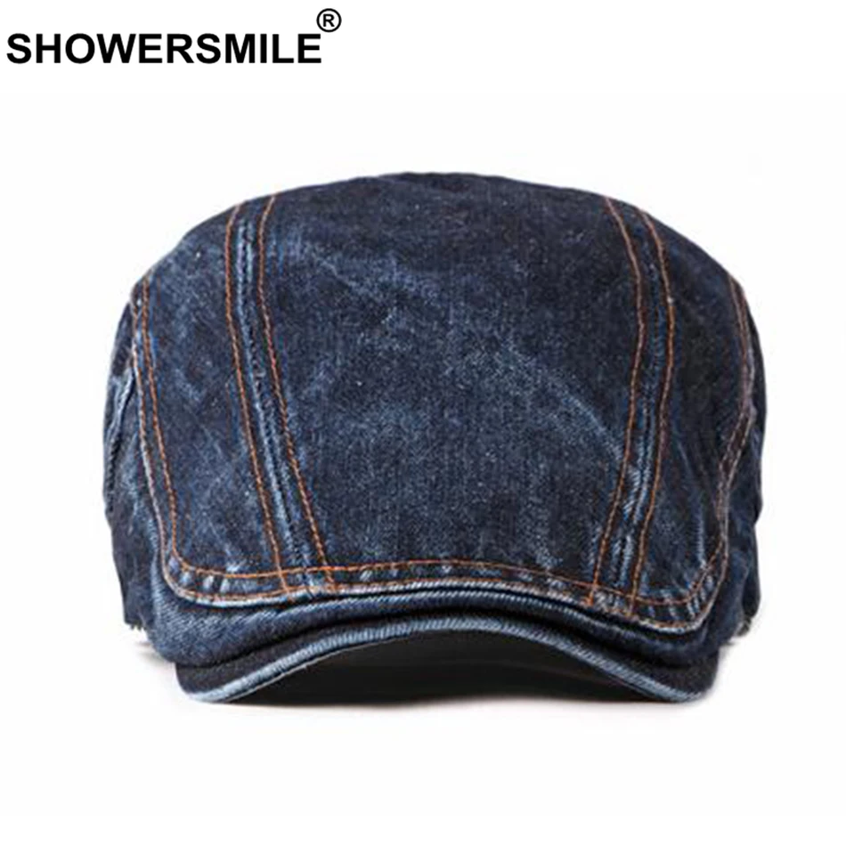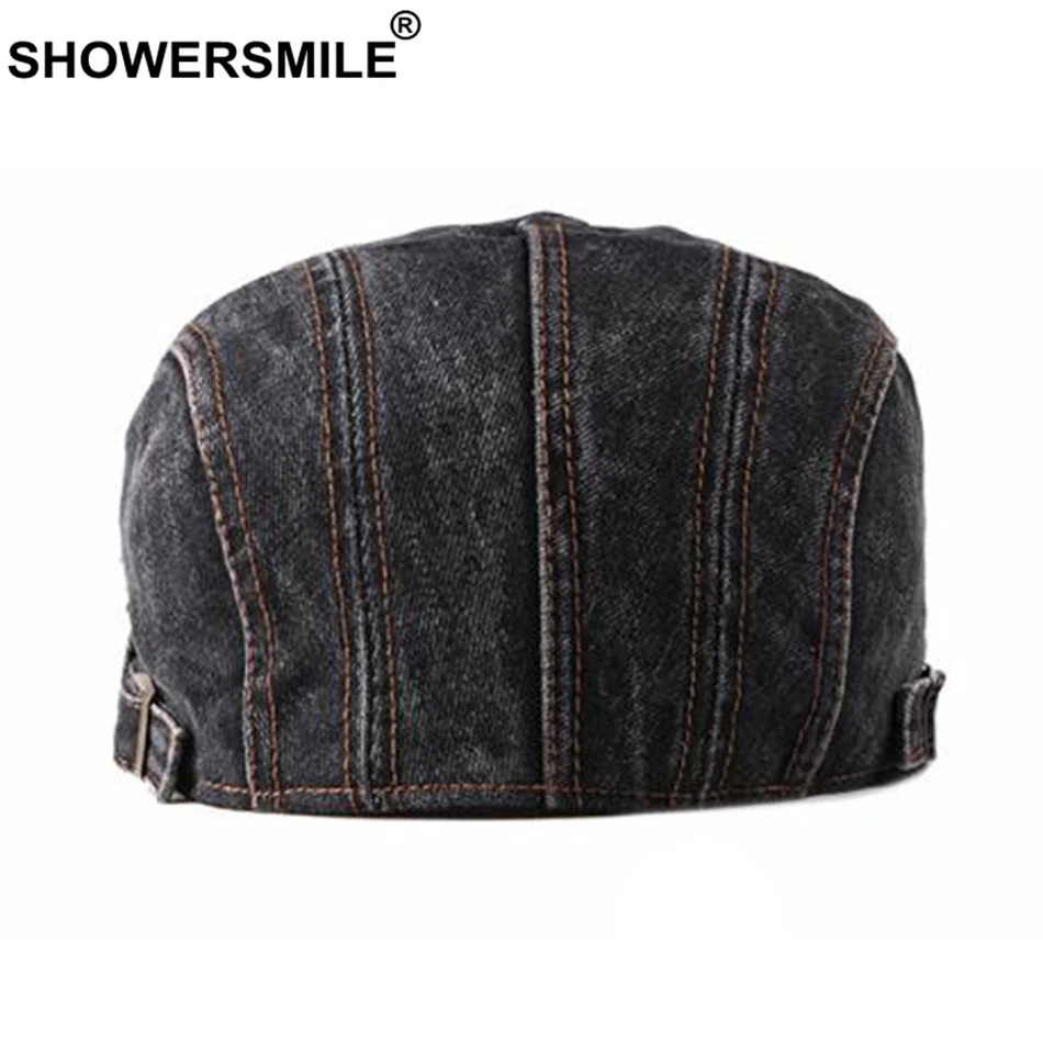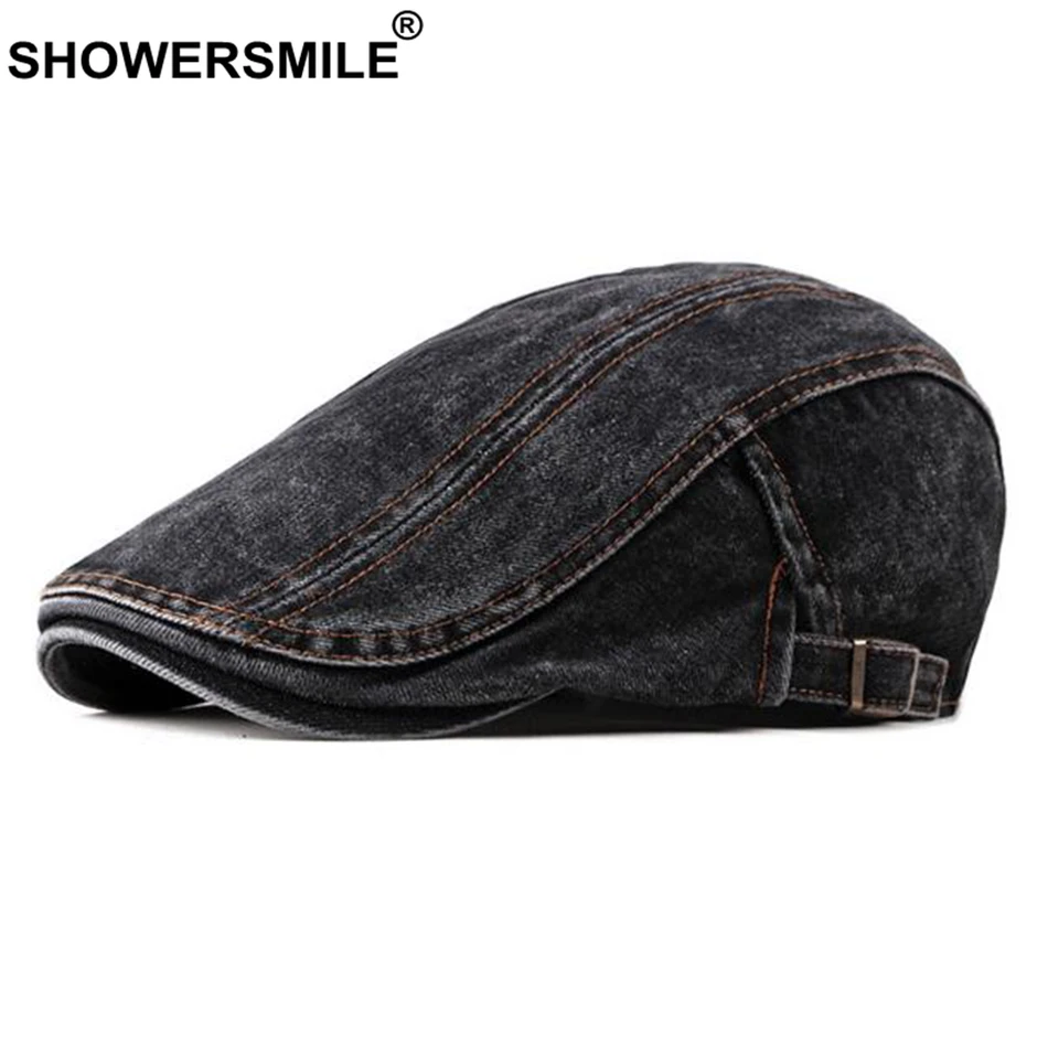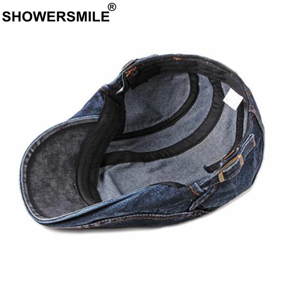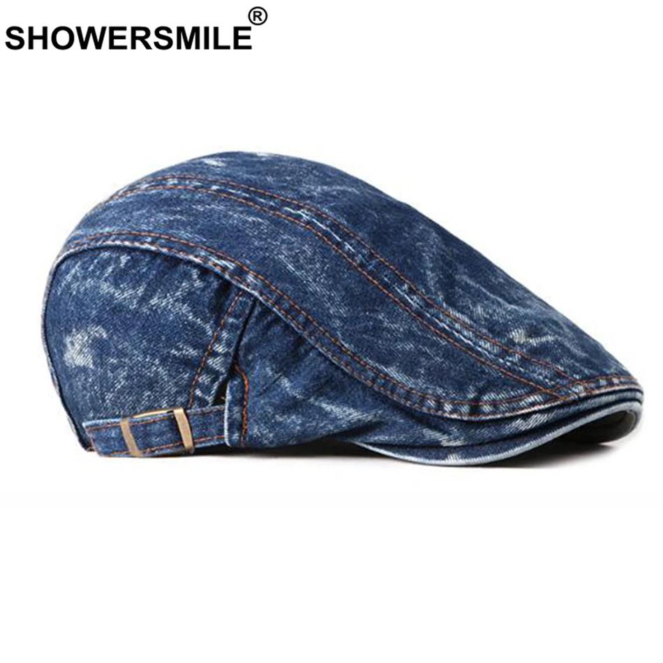 Мужская джинсовая шляпа SHOWERSMILE, потертая Осенняя шляпа Duckbill, хлопковая Регулируемая полосатая Кепка с плющ, винтажный берет, мужской берет
