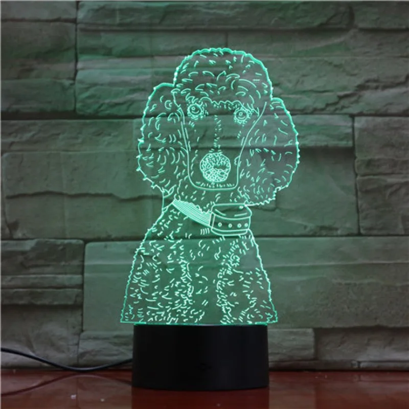 3D лампа в форме пуделя для домашнего животного, собаки, иллюзия, ночсветильник светодиодный ная лампочка, украшение для дома, разноцветные, Прямая поставка, сенсорный датчик, игрушка с батареей