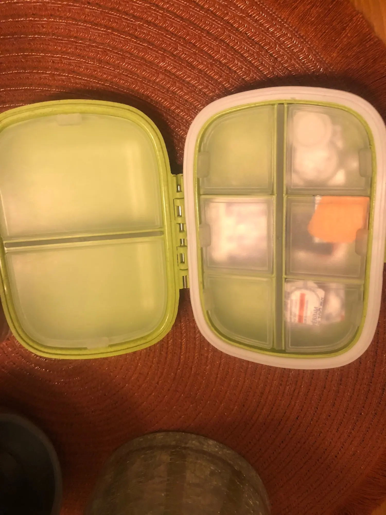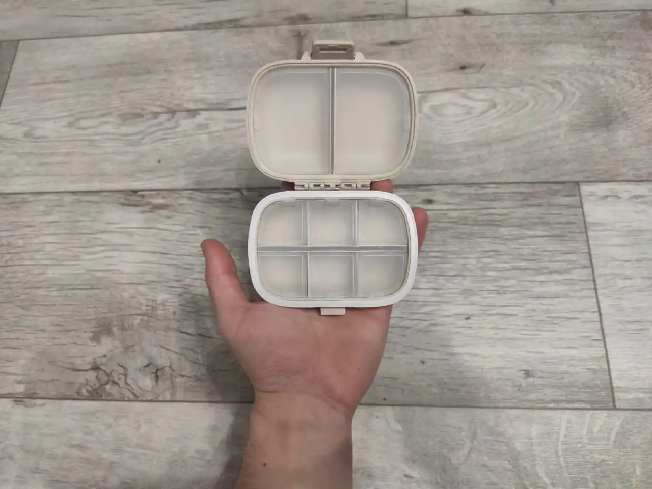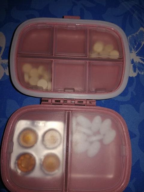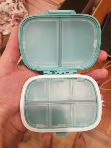 Отлично! Он держит больше того, что мне нужно, но он помещается в моей сумочке. Это хороший размер для меня, так как я постоянно болел. Мне нужно взять с собой много таблеток. Хорошее качество, особенно петли. Блокирует плотно, но не сложно разблокировать. Сначала с помощью моего ноготя было трудно открыть пару кубиков, поэтому я подал защелку вниз с помощью пилочки для ногтей, и теперь они красиво открываются, не ломая мои ногти. Есть один cubby, который я не напечатал, но его очень легко открыть. Я не думаю, что он прольется, но это немного касается. Это красивый, бледно-розовый. В целом, я очень доволен этим.