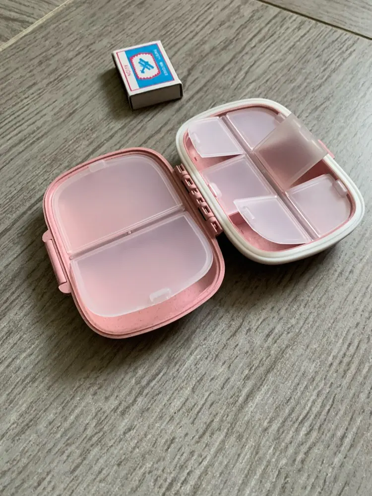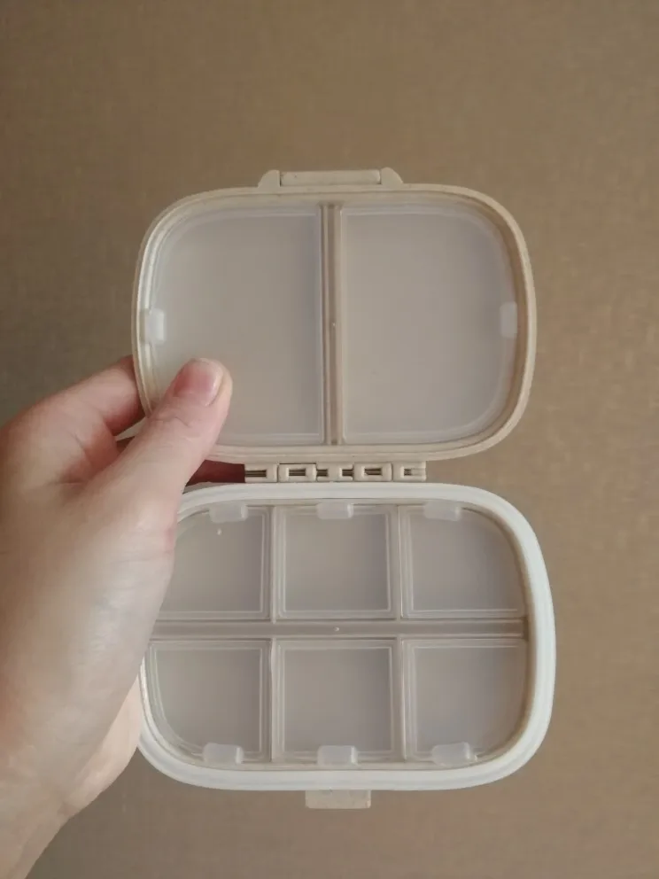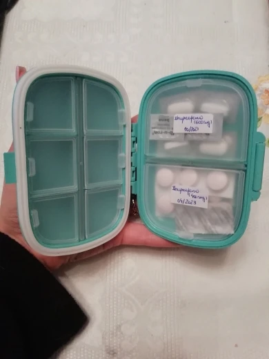 Давно хотела такую таблетницу. Она размером с мыльницу, очень аккуратная, отделения подходят для разных размеров таблеток. Не неделька, но мне и не надо. Обслуживание отличное. Большое спасибо!