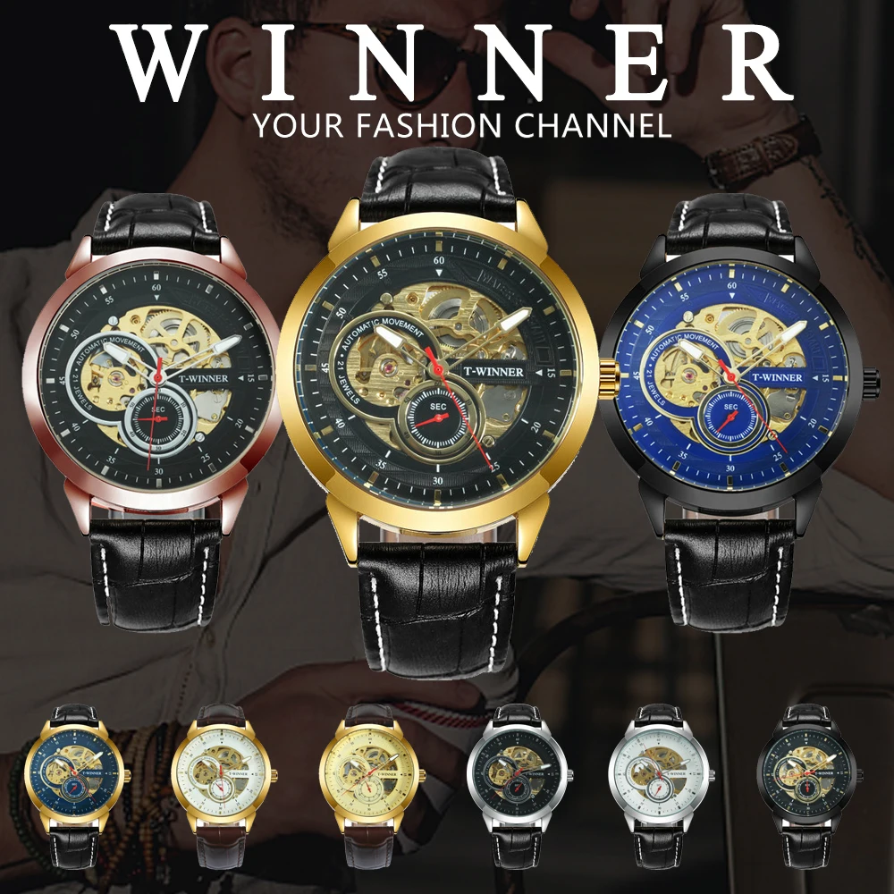 T-WINNER новые мужские часыБренд: WINNER( T-WINNER)ПРИМЕЧАНИЕ. Официальный магазин завода Winner, 100% оригинальные подлинные часы, продажа оптом и в розницу.Стиль: Модный, Повседневный, деловой, роскошный, спортивныйОсновная особенность:1. Креативный дизайн часов, стиль хип-хоп2. Новые модные часы с кожаным ремешком.3. Гарантия на 12 месяцевПодходящий Случай:Идеально подходит для всех случаев и мероприятий: вечерние, юбилейные, деловые, повседневные, спортивные, домашние или повседневныеХарактеристики:Диаметр циферблата: 45 ммЧехол Толщина: 14 ммДлина Часов: 240 ммШирина ремешка: 22 ммВес часов: 73,5 гМеханизм: автоматический самоветерМеханический (без необходимости батареи)Материал зеркала: HardlexТип застежки: ПряжкаБлестящая фурнитураВодостойкость: водонепроницаемые для ежедневного ношения (не для купания или душа)Посылка включает в себя:Часы-1 шт. (подарочные коробки на выбор)