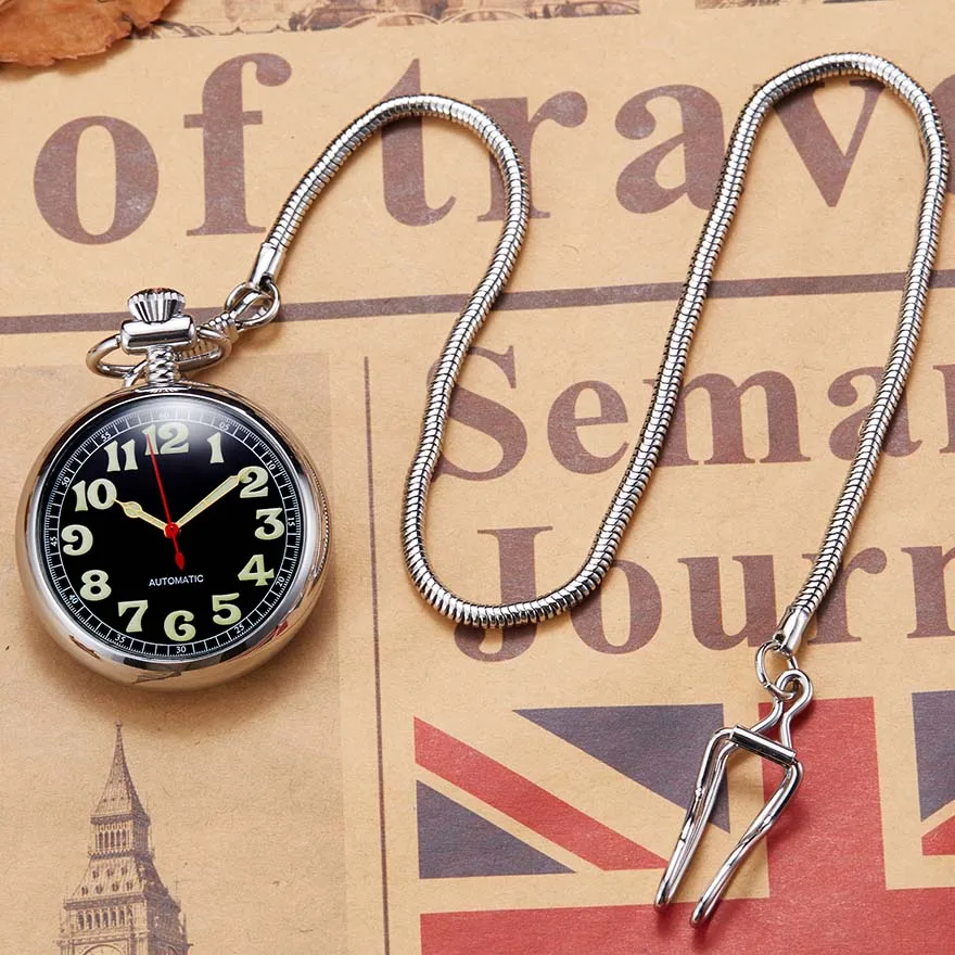 Часы карманные мужские, автоматические, светящиеся, с большим цифер...