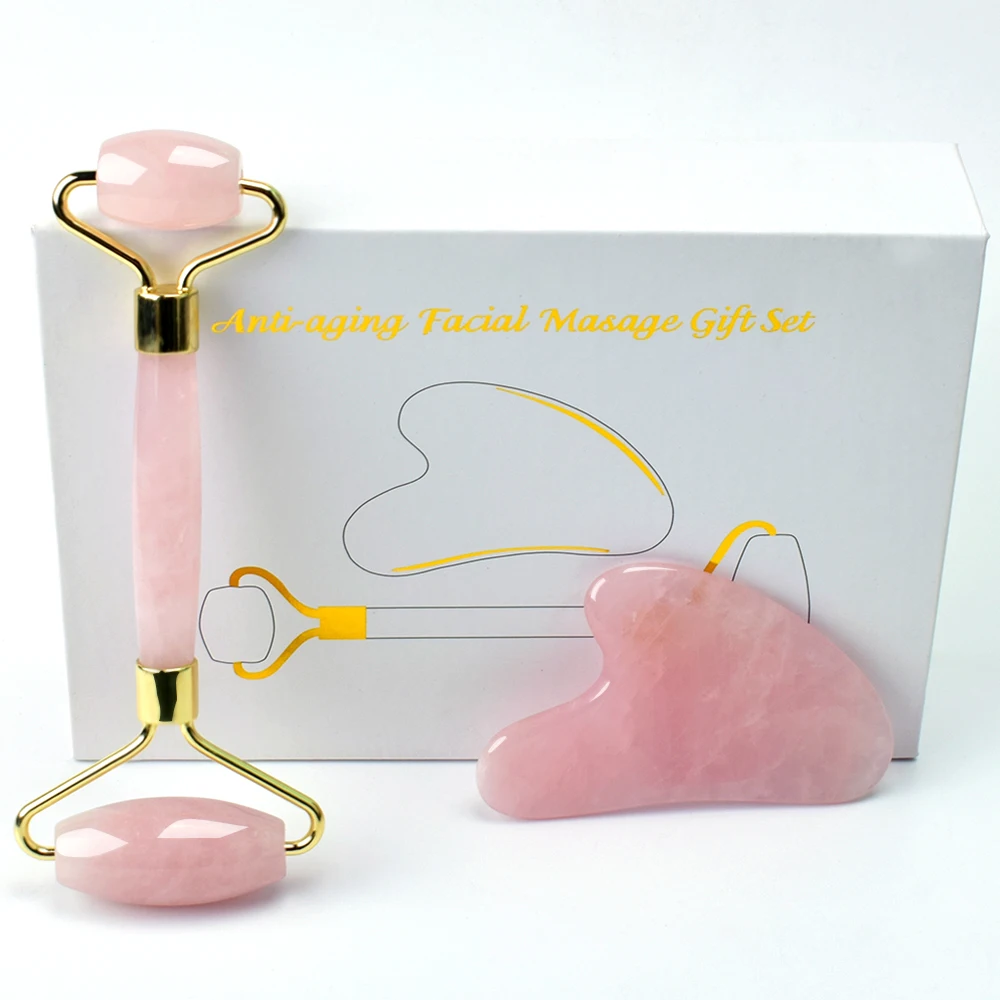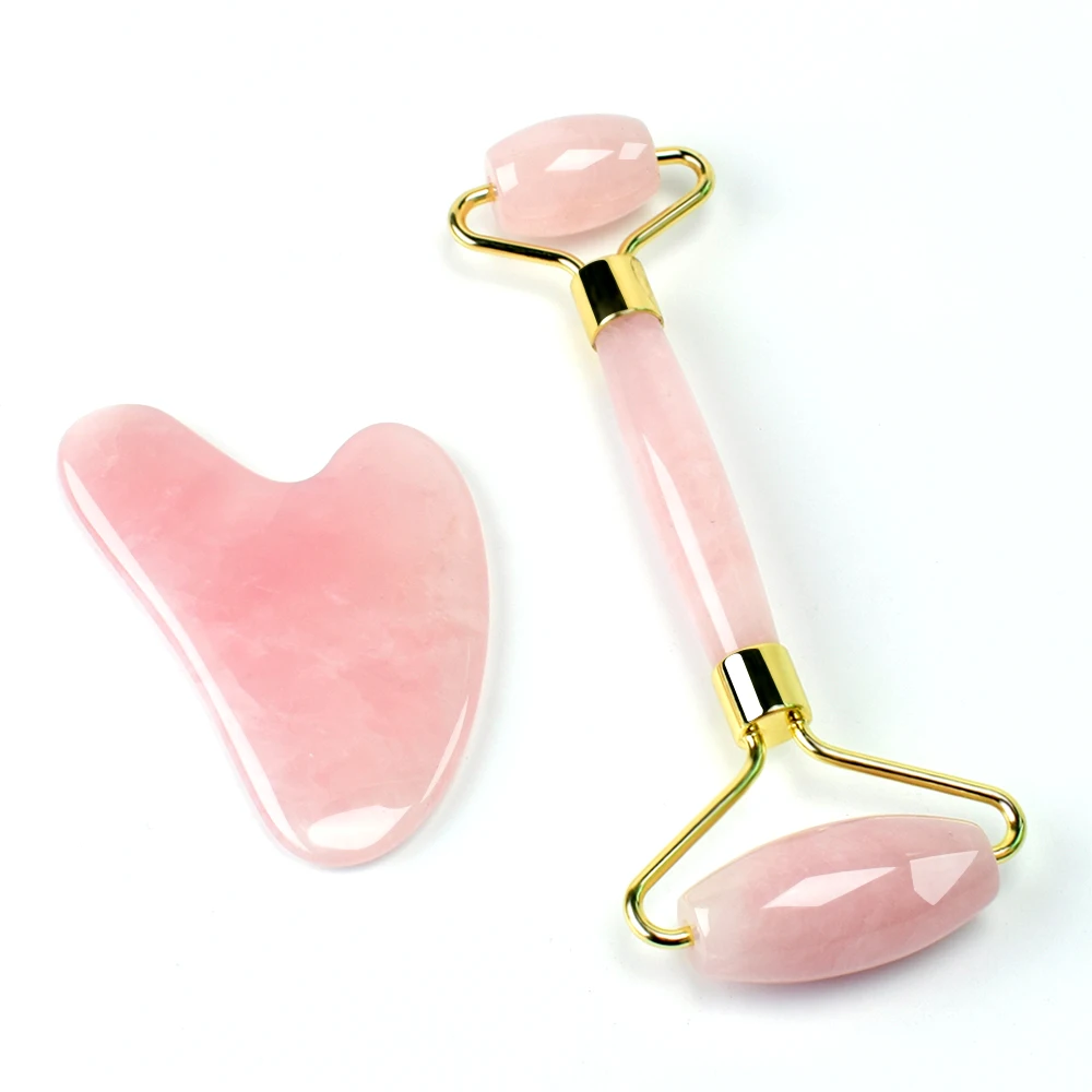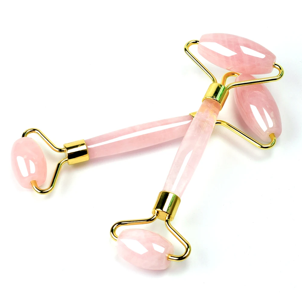 Розовый кварц нефритовый роликовый массажер для лифтинга лица розовый камень антицеллюлитный морщин Кристалл Уход за кожей ролики красота инструмент