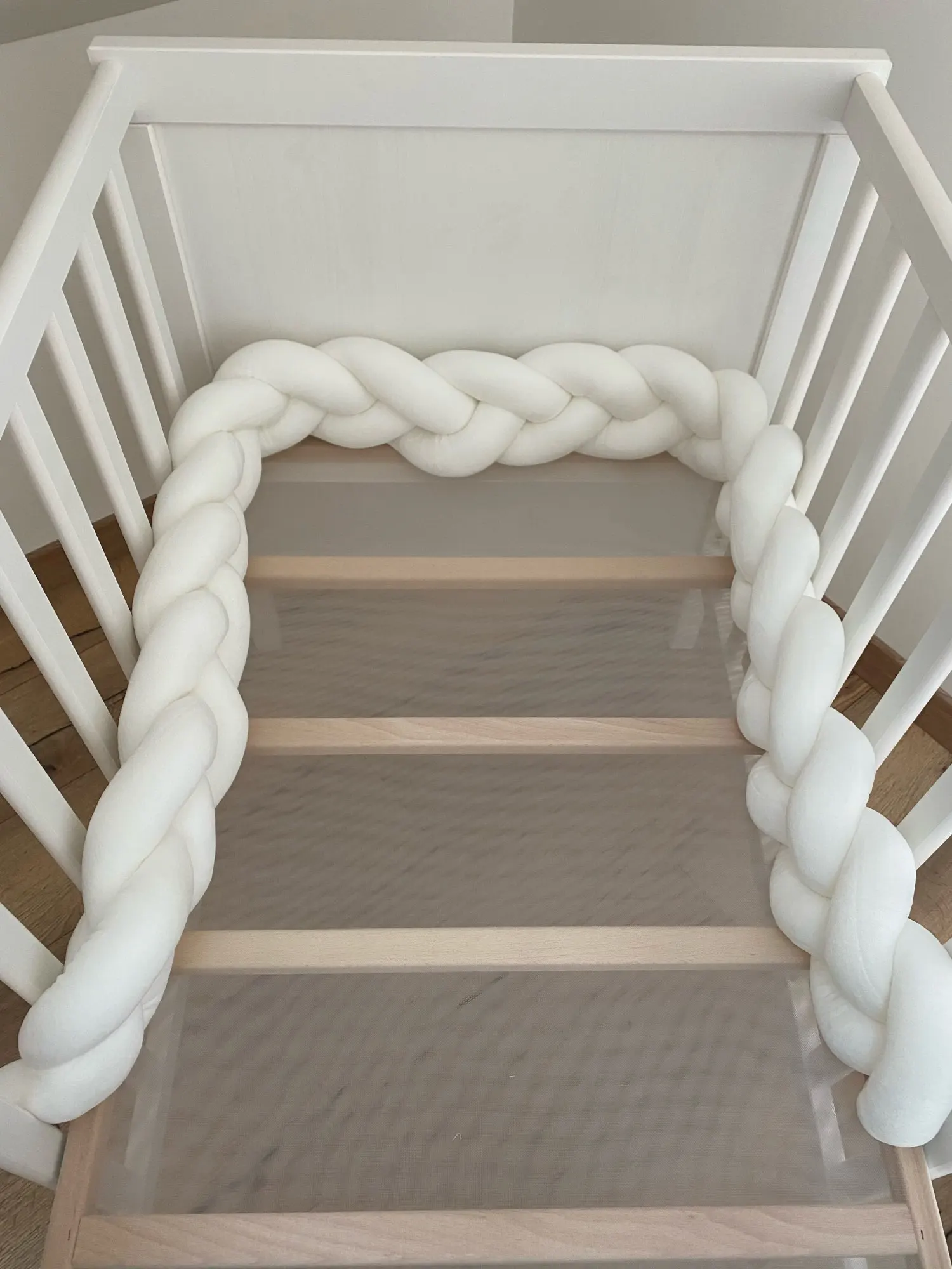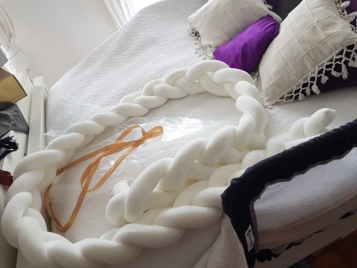 Me ha llegado en solo 6 días. ¡ES SORPRENDENTE! La calidad, color, textura.... Todo es mejor de como lo imaginaba, pero... (y es culpa mía por no leer) es súper estrecha. La foto del vendedor engaña bastante en el grosor del producto ya que no es el mismo, pero en la descripción si que especifica el tamaño. No llega a la medida de protector de cuna, pero me sirve para la cuna grande, la de colecho, hacerle un nidito en el sofá. Espero que haga la función de parar los golpes contra la cuna en un futuro jejejej