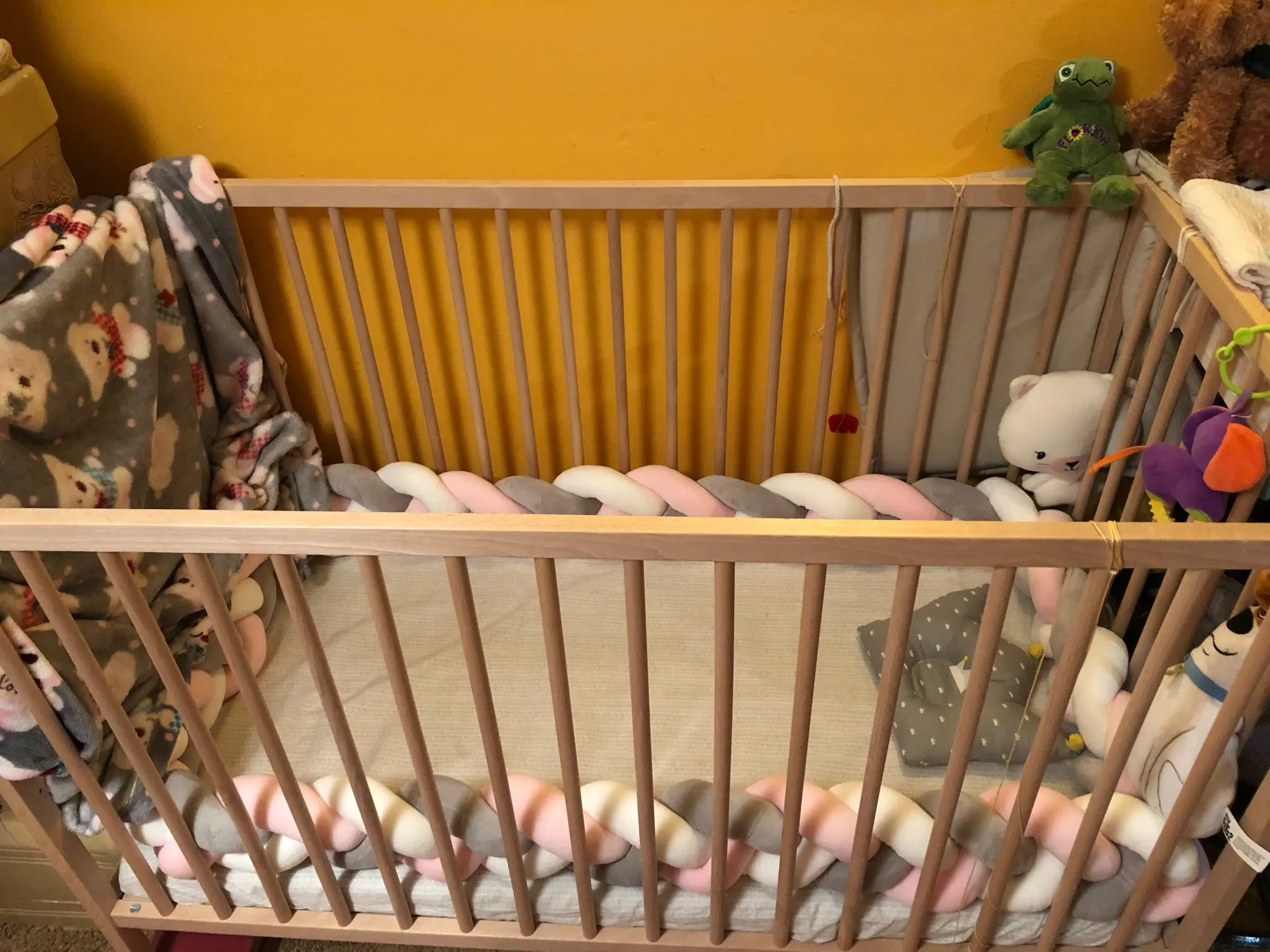 Прибыл быстро, как описано, очень мягкий (гораздо мягче, чем тот, который я заказал в другом магазине Aliexpress) маленький «хвост» в конце очень полезен для крепления к кроватке. Очень рад!