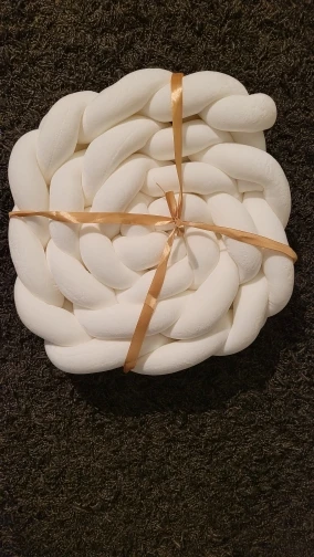 Отличная косичка, правда тоненькая чем другие, шириной с ладошку, но мягкая и красивый цвет, на кровать 120*60 одна сторона осталась 60 см, можно дополнить декоративной подушкой, как и заявлено 3 метра, шла около 15 дней)