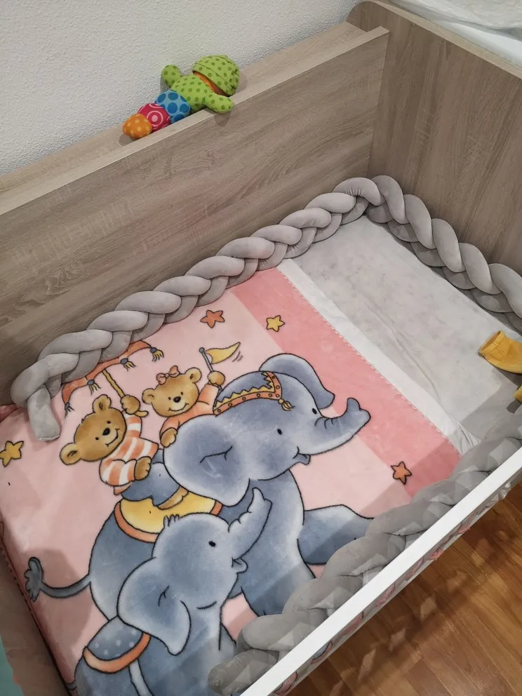 Я рекомендую этот товар. Очень мягкий и такой же цвет, как на фотографиях продавца. Заказал 3 метра для детской кроватки 120х60, чтобы вы могли видеть на моем фото, как она выглядит. Также получил заказ довольно быстро-в течение 24 дней.