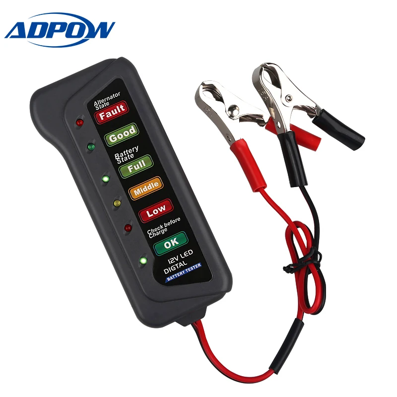 Тестер автомобильного аккумулятора ADPOW, 12 В, цифровой анализатор аккумулятора, проверка состояния аккумулятора, генератор, диагностический инструмент для автомобиля