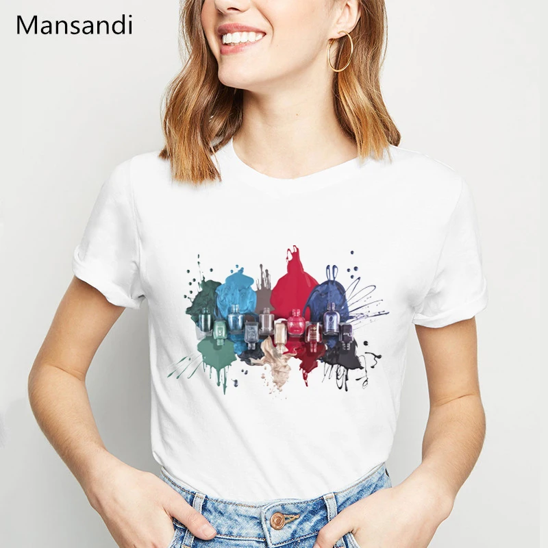 Футболка Rainbow лак для ногтей, печать, женская черная футболка, л...