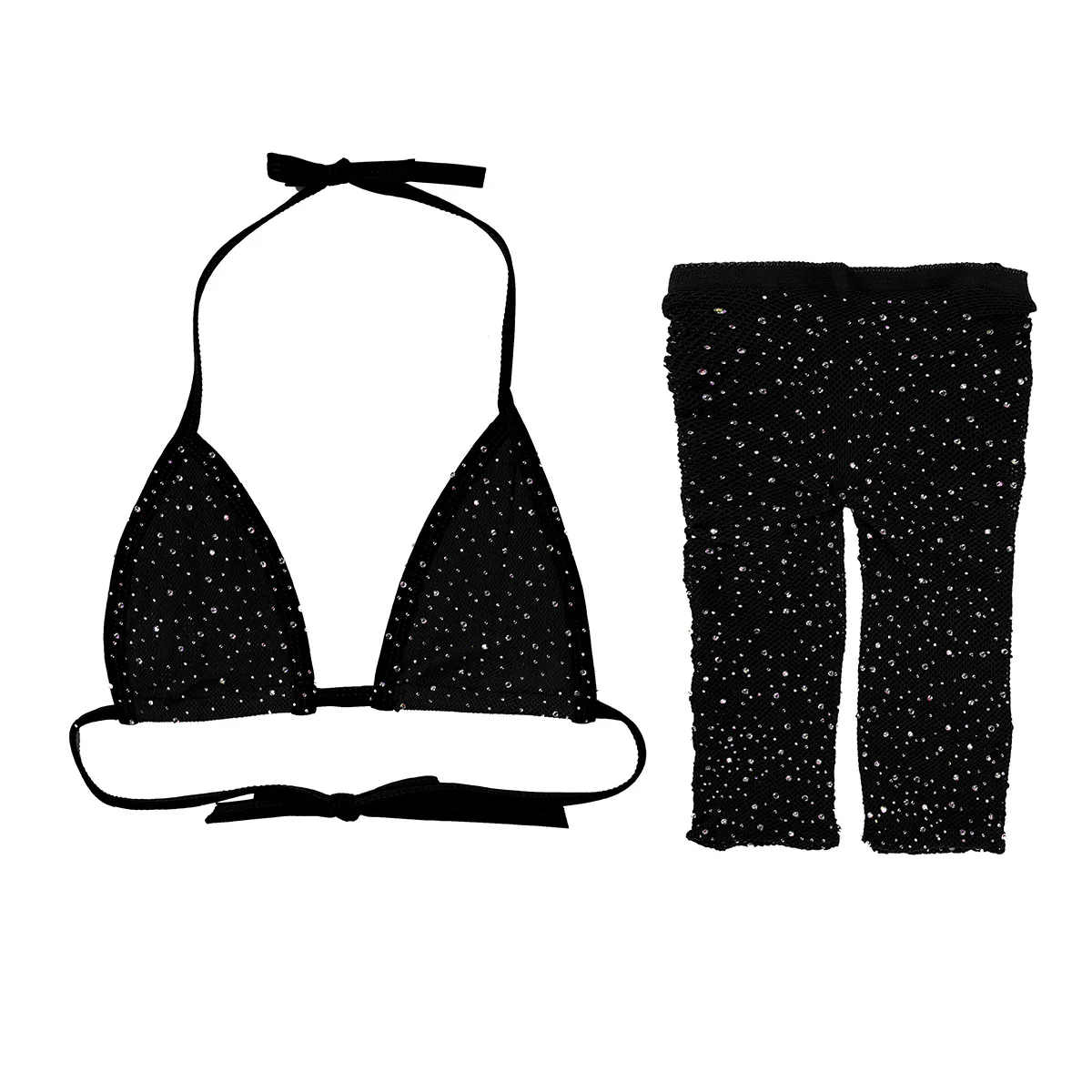 Особенности:Женское блестящее нижнее белье в сеточку, стразы, комплект пляжных купальников, один размер подходит для большинства.Воротник-халтер, топы-бра с глубоким v-образным вырезом, завязка на тонких бретелях сзади, можно отрегулировать под ваш размер, сочетая с горячими шортами.Прозрачный ажурный дизайн с кристаллами стразы сверкают по всему, романтичный и соблазнительный, заставляет вас выглядеть манящим.Изготовлен из высокоэластичной ткани, мягкий, удобный и дышащий в носке, хорошо сочетается с бикини, на каблуках.Идеально подходит для тропического отдыха, лета, бассейна, серфинга, ночных клубов, пляжной одежды, вечерние, отпуска.