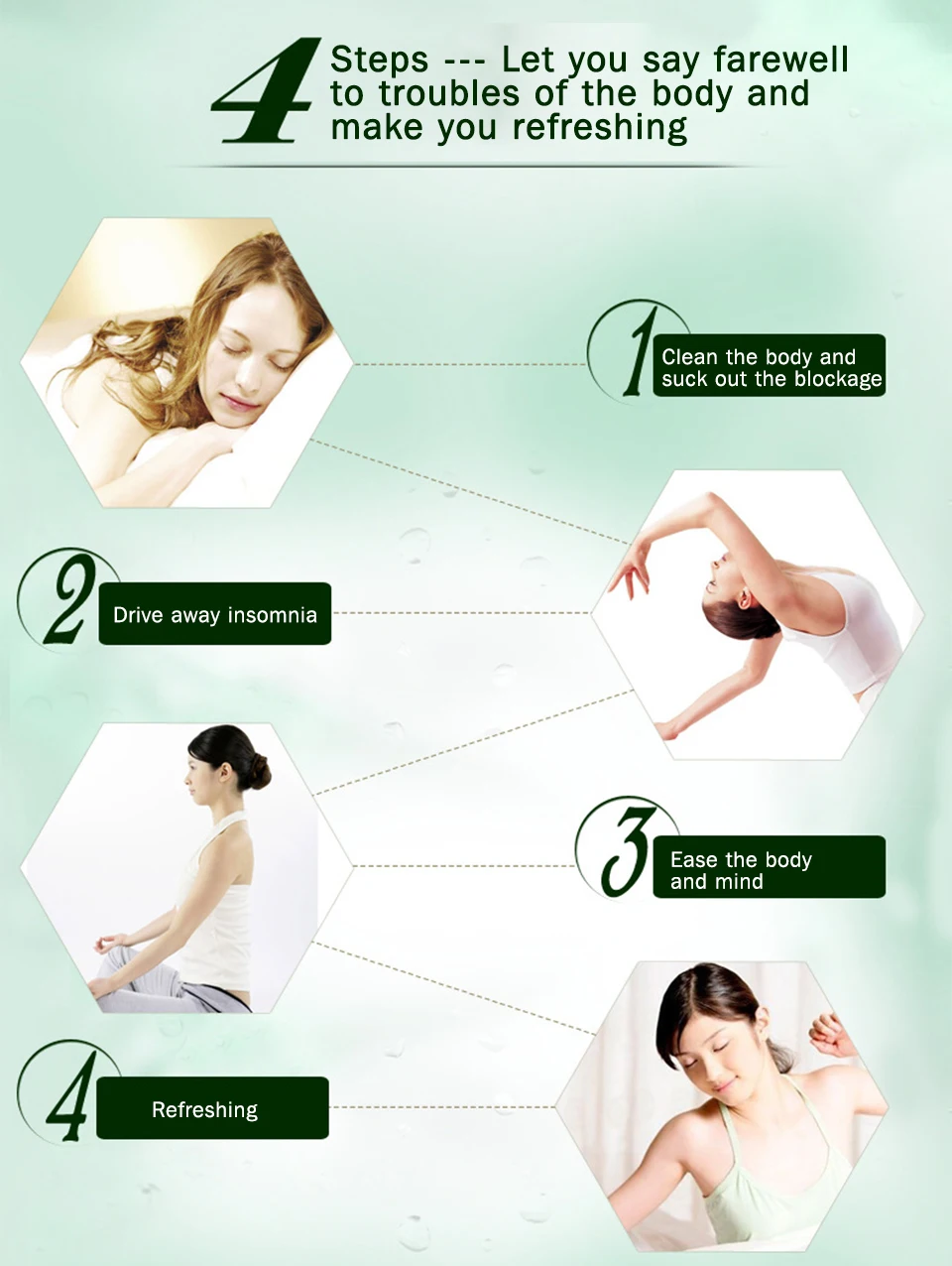 Шаги-Позвольте вам попрощаться с проблемами тела и сделать вас освежающим очистить тело и высасывать засорение выгоняет бессонницу, облегчая освежение тела и ума