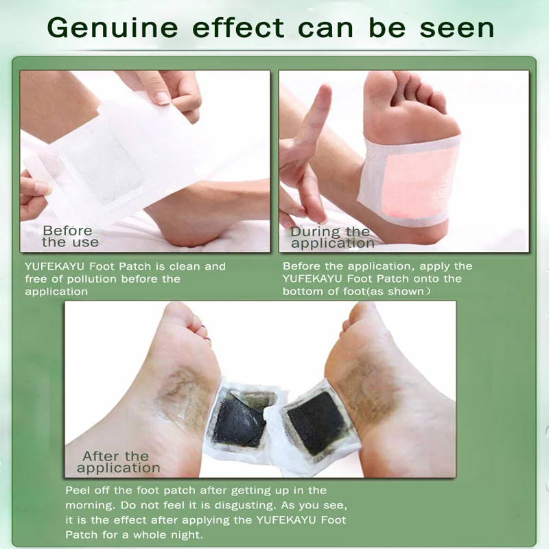 Перед использованием. Пластырь для ног YUFEKAYU чист и не загрязняется перед нанесением во время нанесения перед нанесением, нанесите пластырь для ног YUFEKAYU на нижнюю часть стопы (как показано на рисунке) после нанесения отшелушивайте пластырь для ног после того, как вставали утром, не чувствуйте себя противным. Как вы видите, это эффект после нанесения пластырь для ног YUFEKAYU на всю ночь.