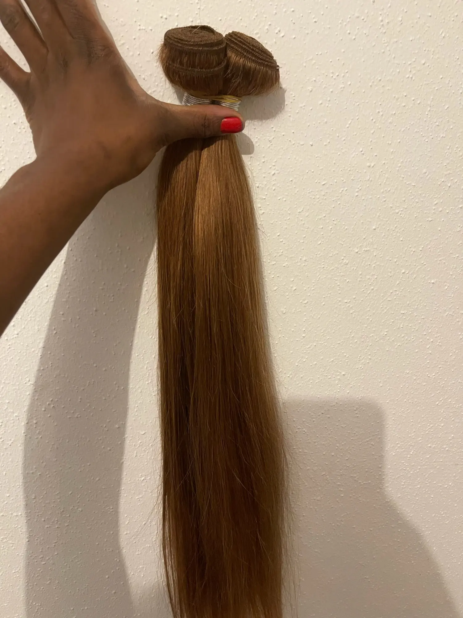 Получил очень быстро до назначенной даты. Продукт наивысшего качества, хотя и не слишком густые волосы для наращивания.