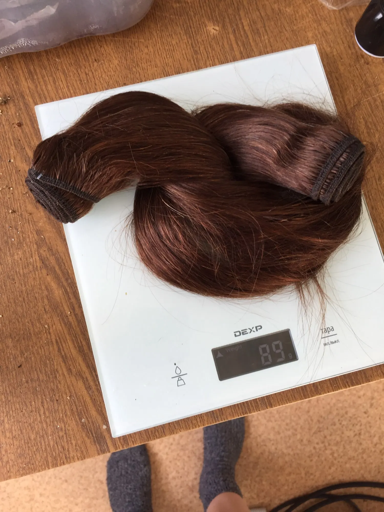 Очень тонкие концы волос, вес всё меньше, даже 90 граммов нет.